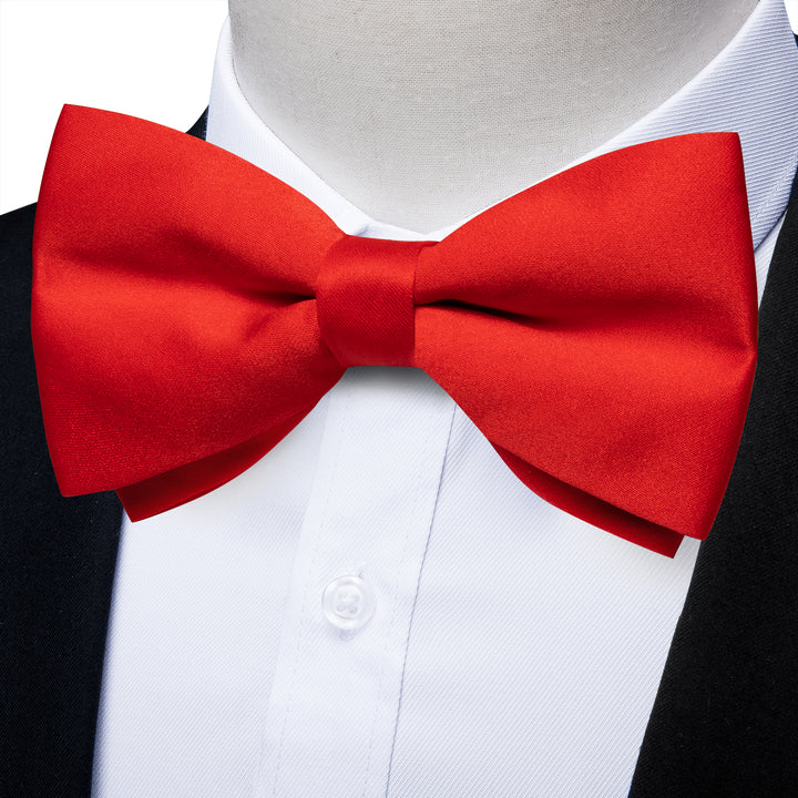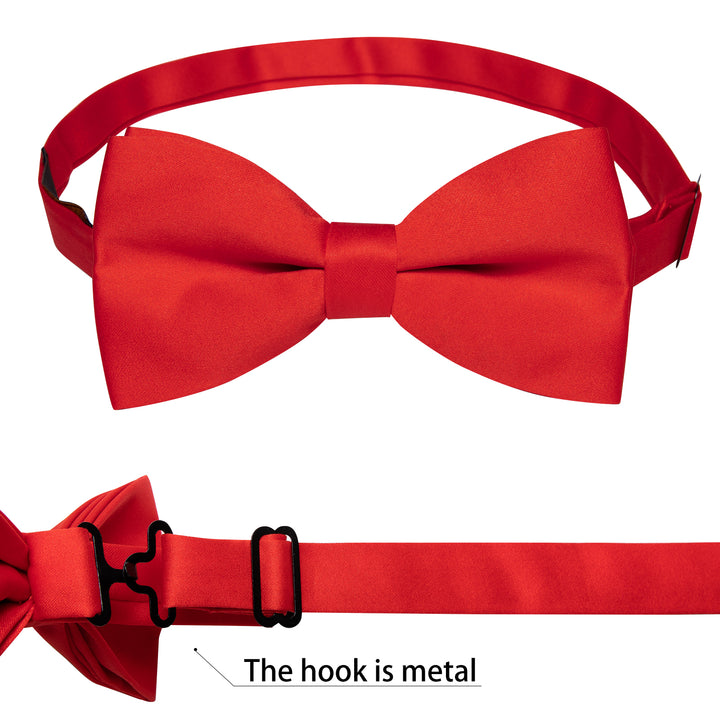 Ties2you Men's Solid Bow Tie Red Pre-tied Business Bowtie Pocket Square Cufflinks Set