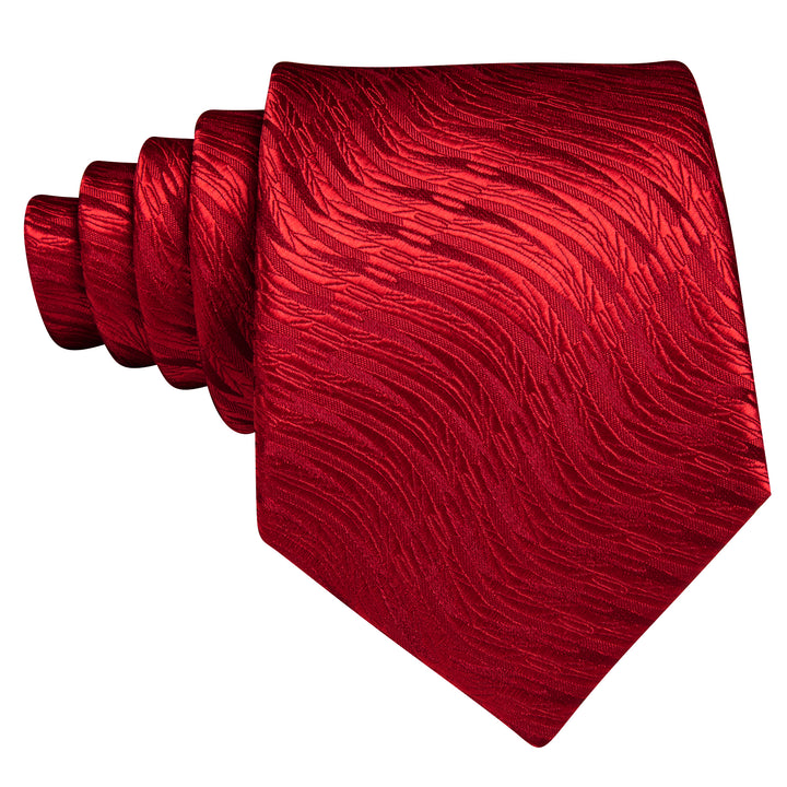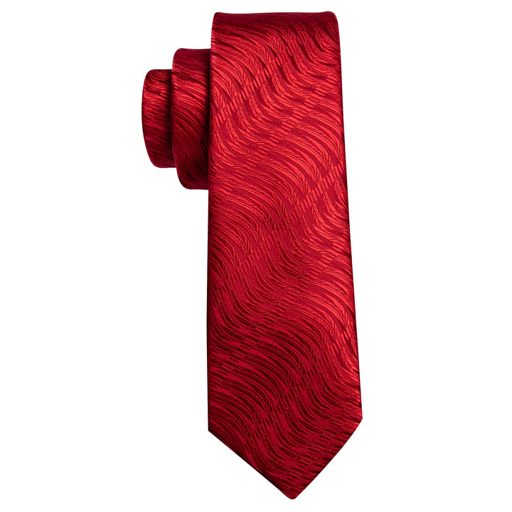 Red Woven Men's Silk Necktie Hanky Cufflinks Set