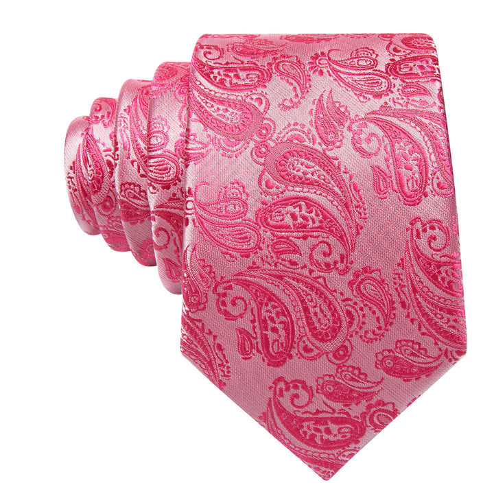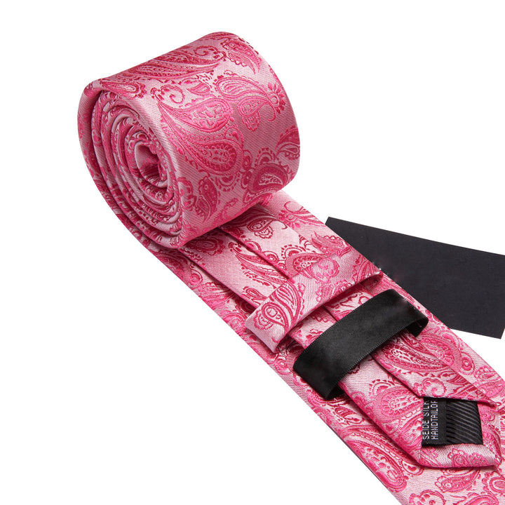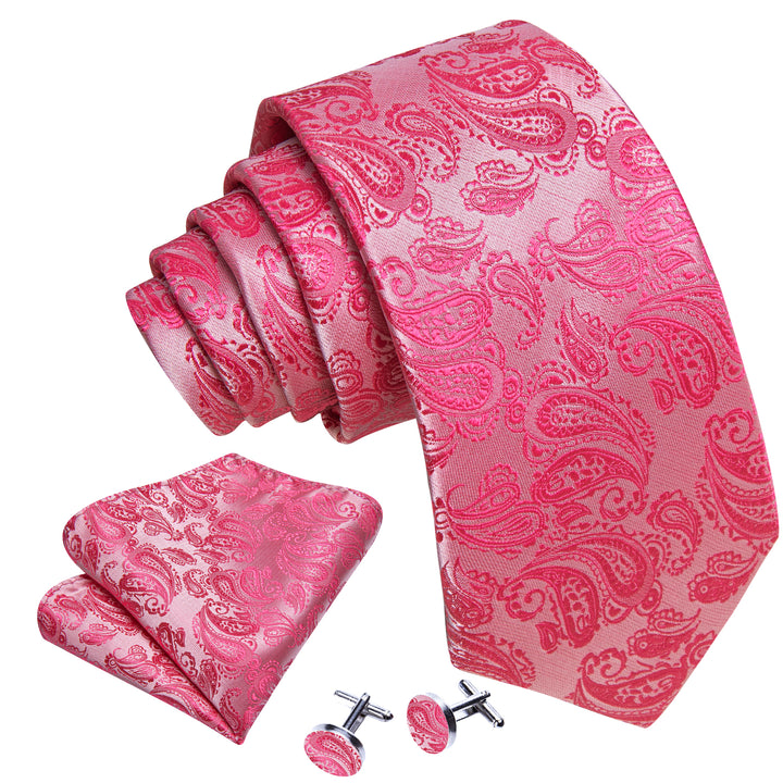 Rose Red Paisley Men's 63 Inches Extra Length Tie Pocket Square Cufflinks Set