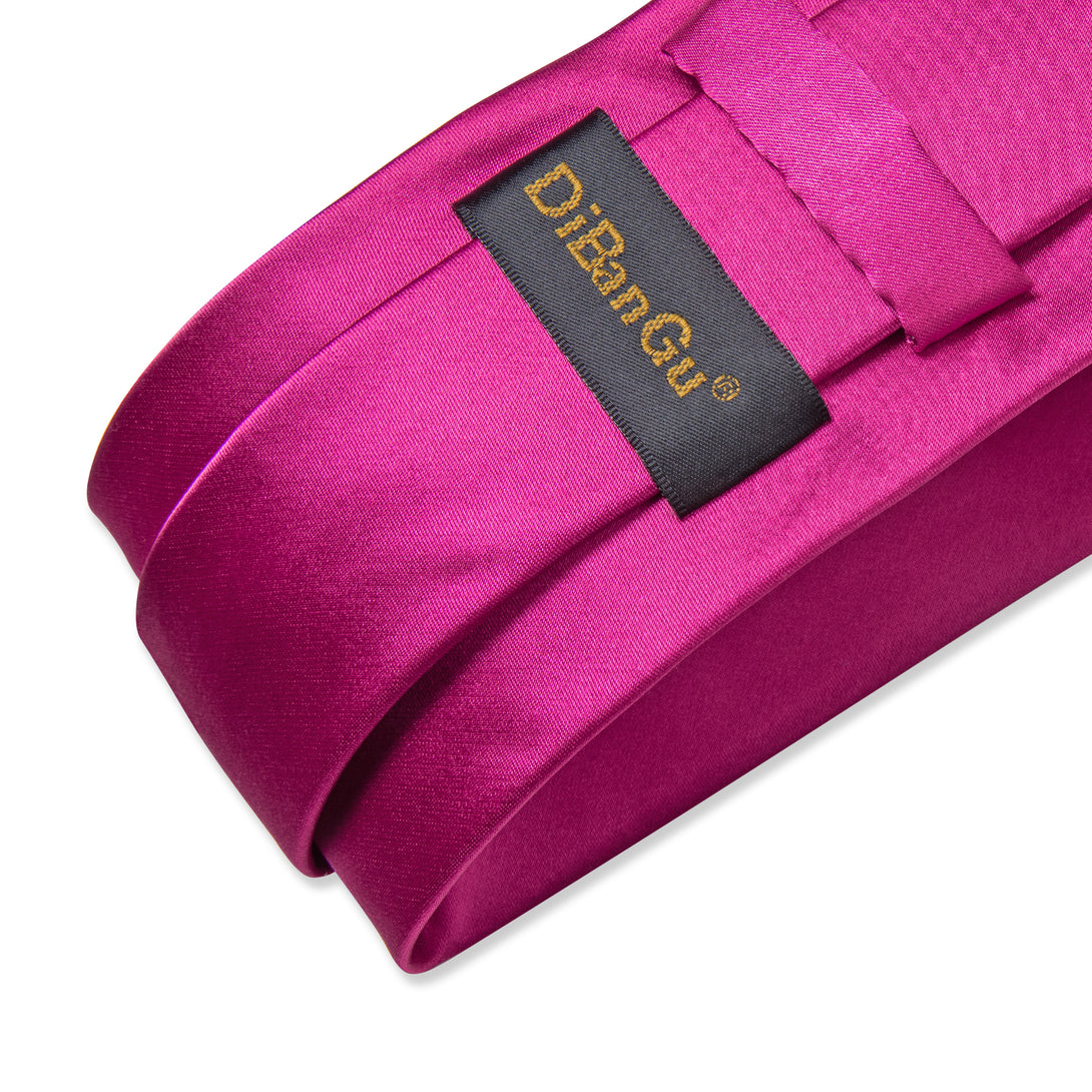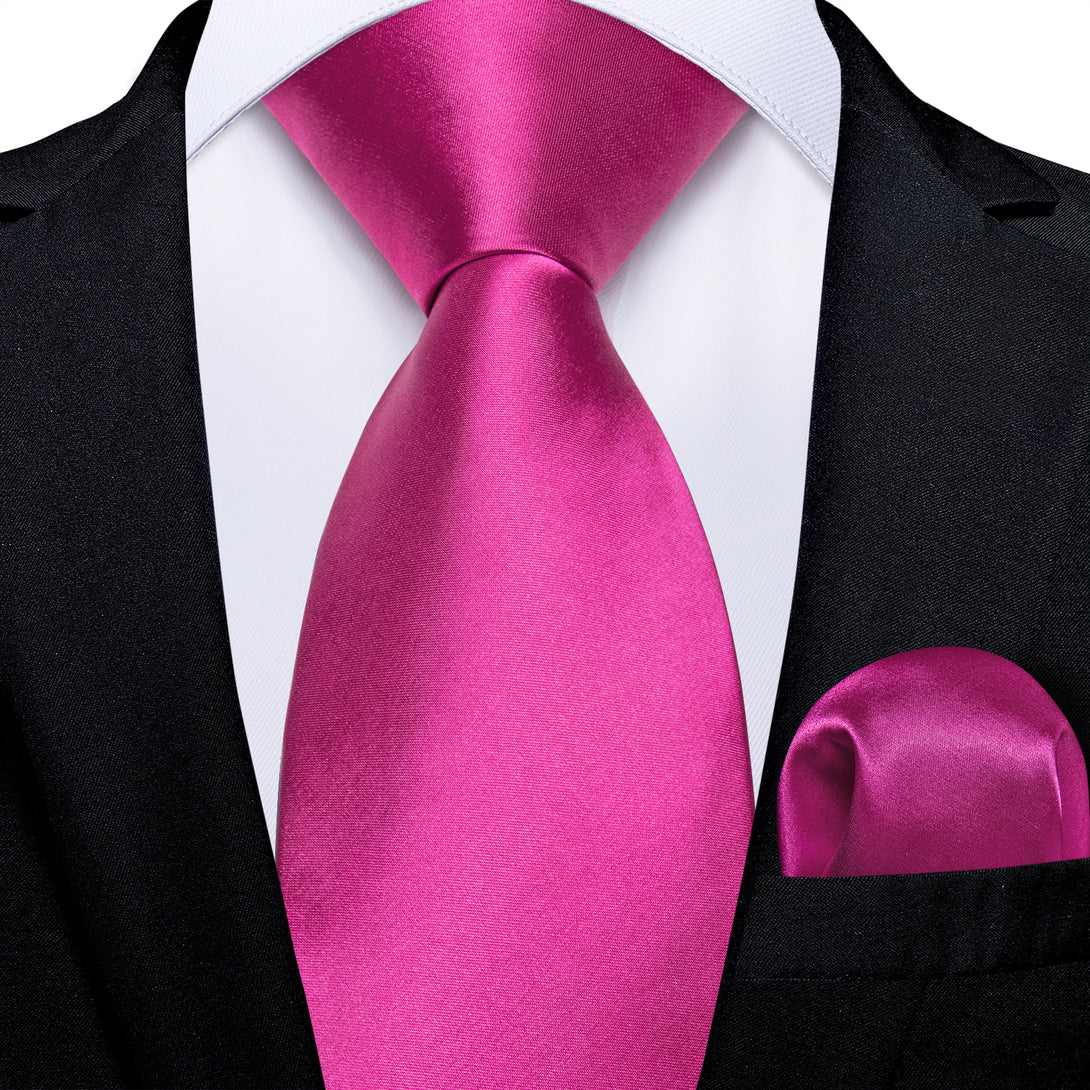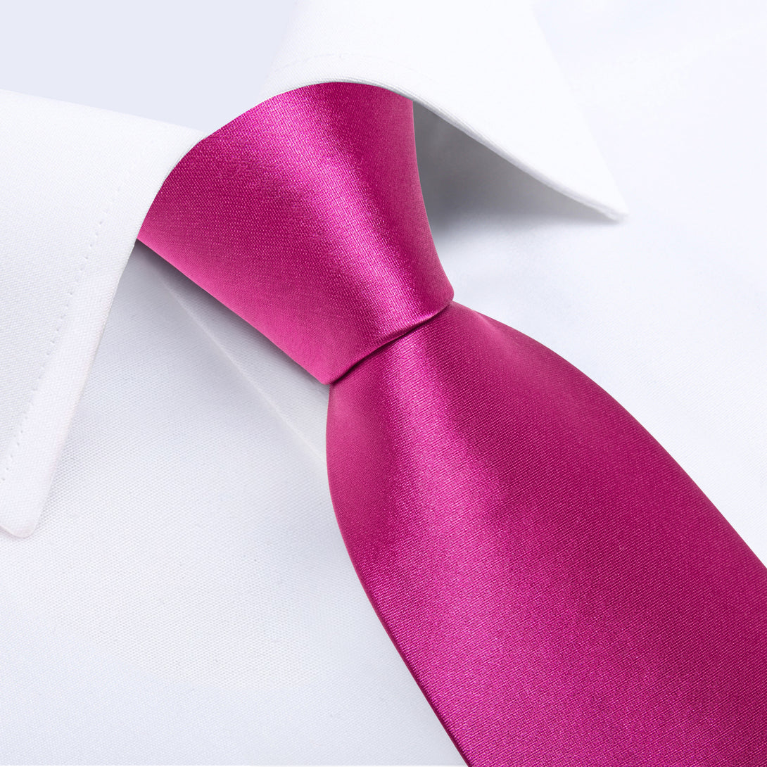 Rose Red Satin Solid Silk Tie Pocket Square Set with Tie Clip