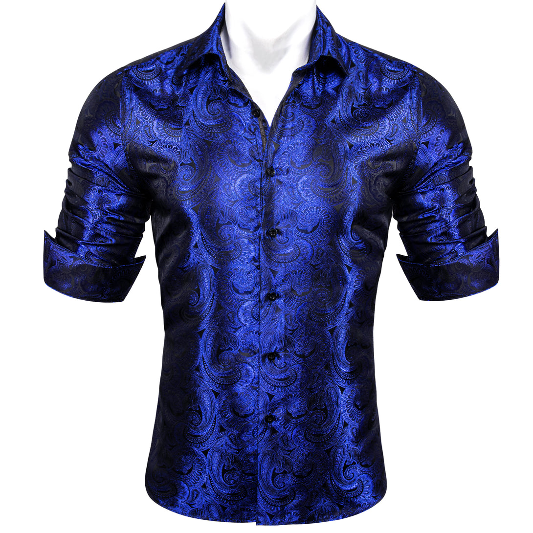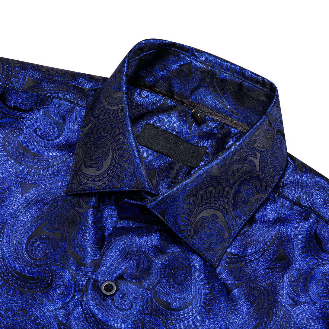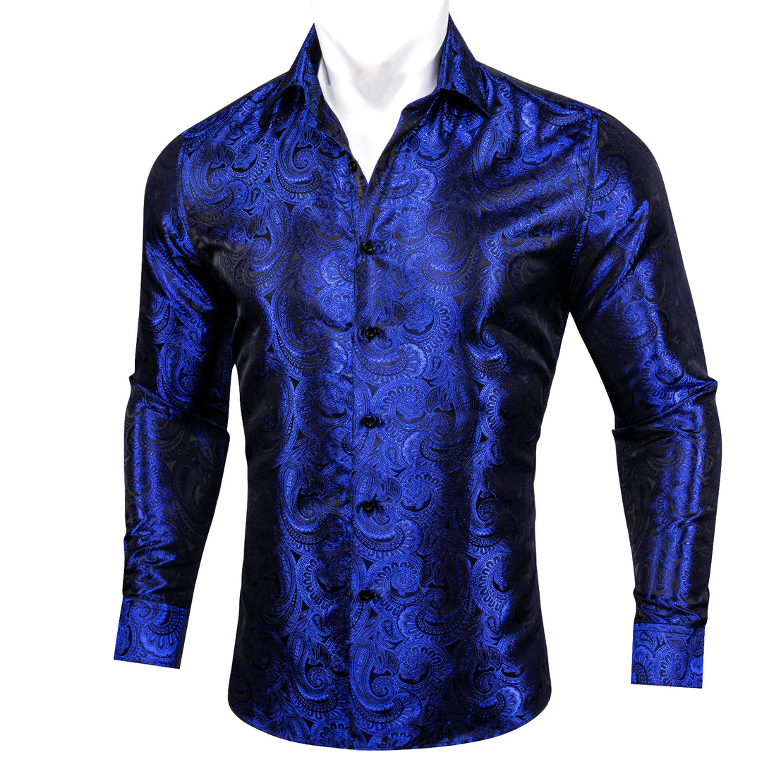 Royal Blue Paisley Pattern Silk Men's Long Sleeve Shirt