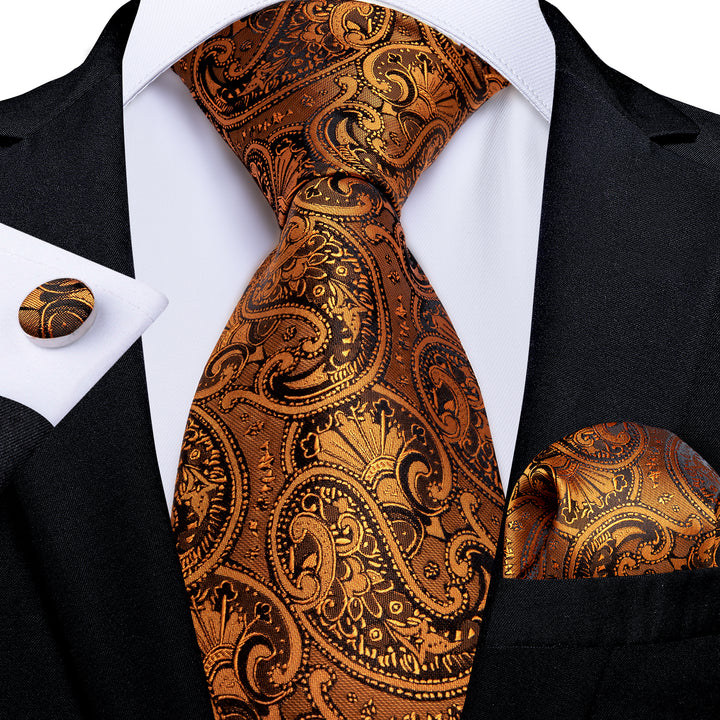 Royal Yellow Floral Tie Pocket Square Cufflinks Set