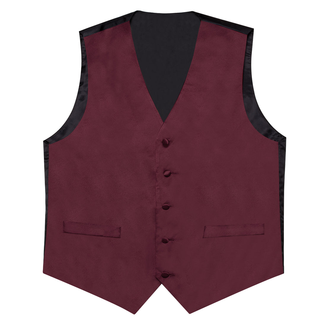 Satin Burgundy Red Solid Men's Vest Bow Tie Set