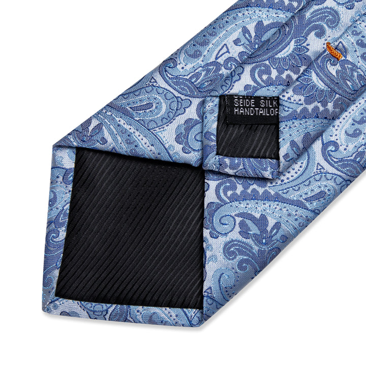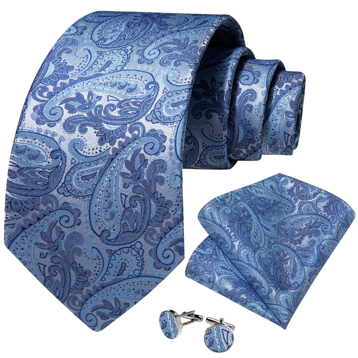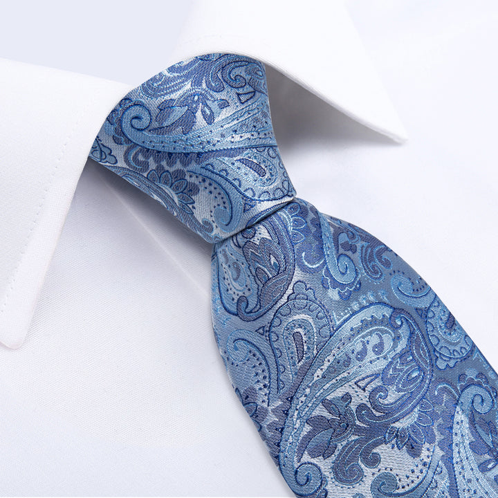 Ties2you Baby Blue Silk Tie Paisley Prom Tuexdo Necktie Pocket Square Cufflinks Set