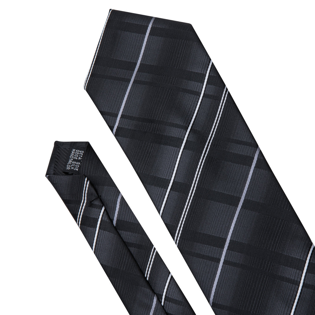 classic business black white silver striped silk mens tie and pocket square sets for suits