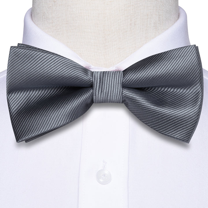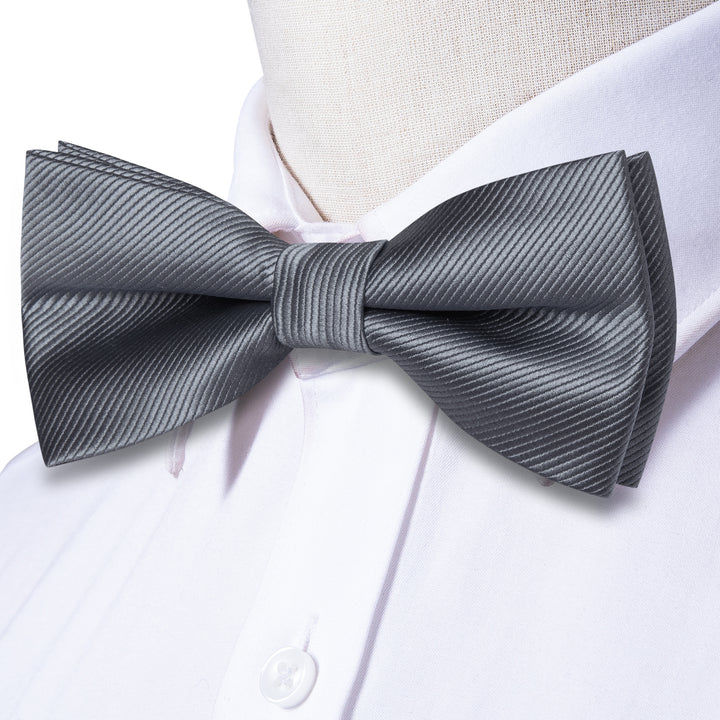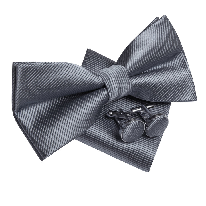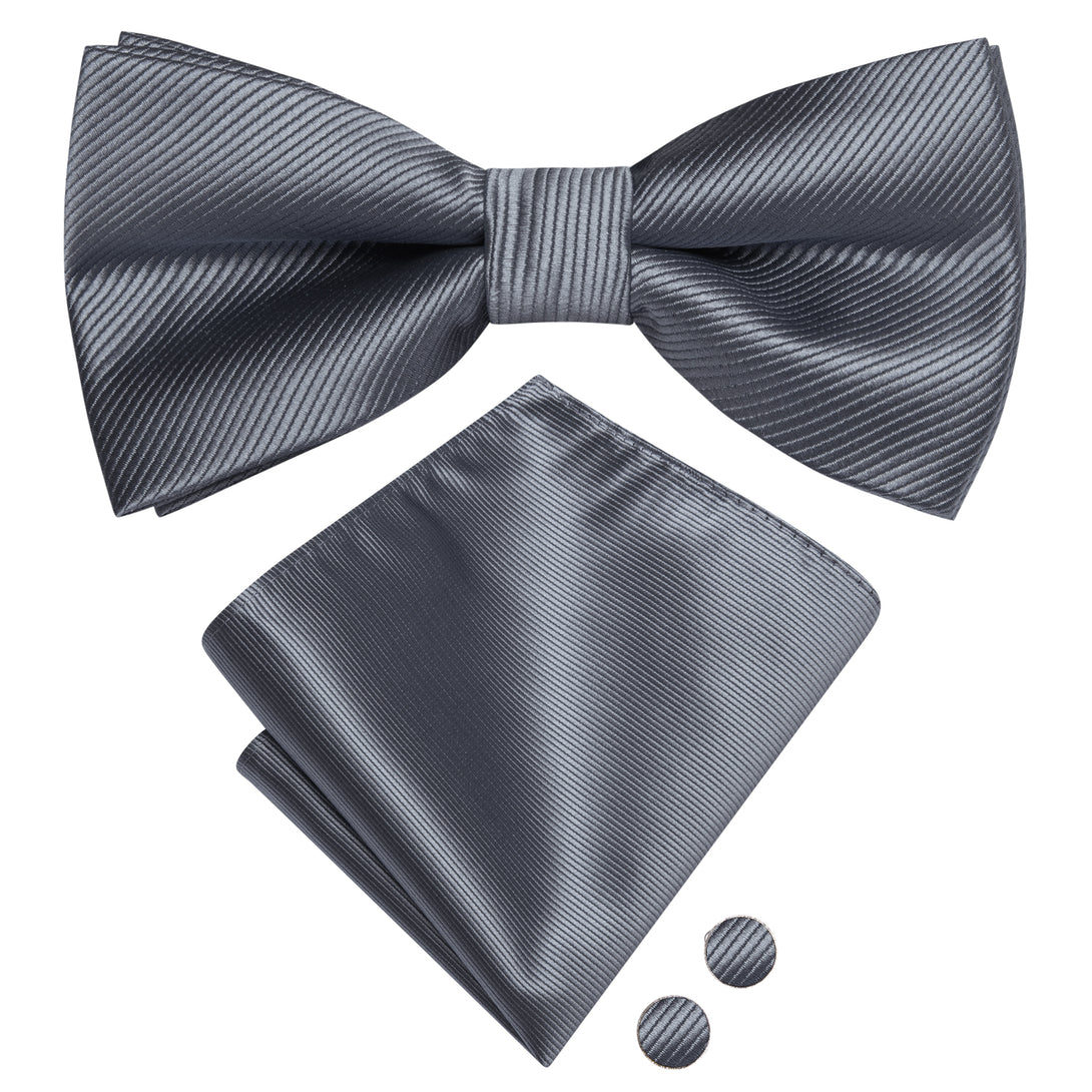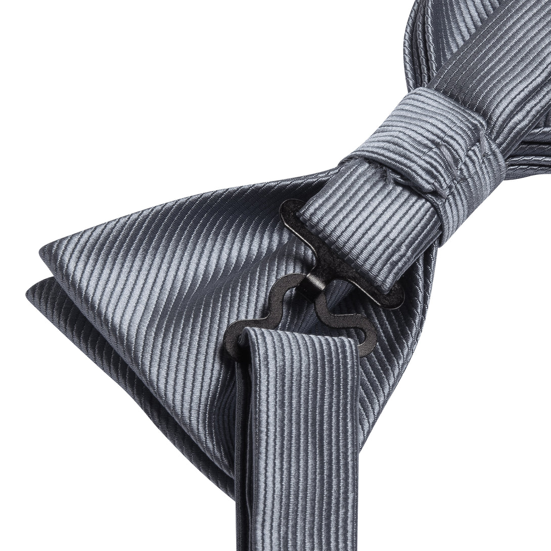Ties2you Men's Grey Pre-tied Bow Tie Striped Formal Bowtie Handkerchief Cufflinks Set