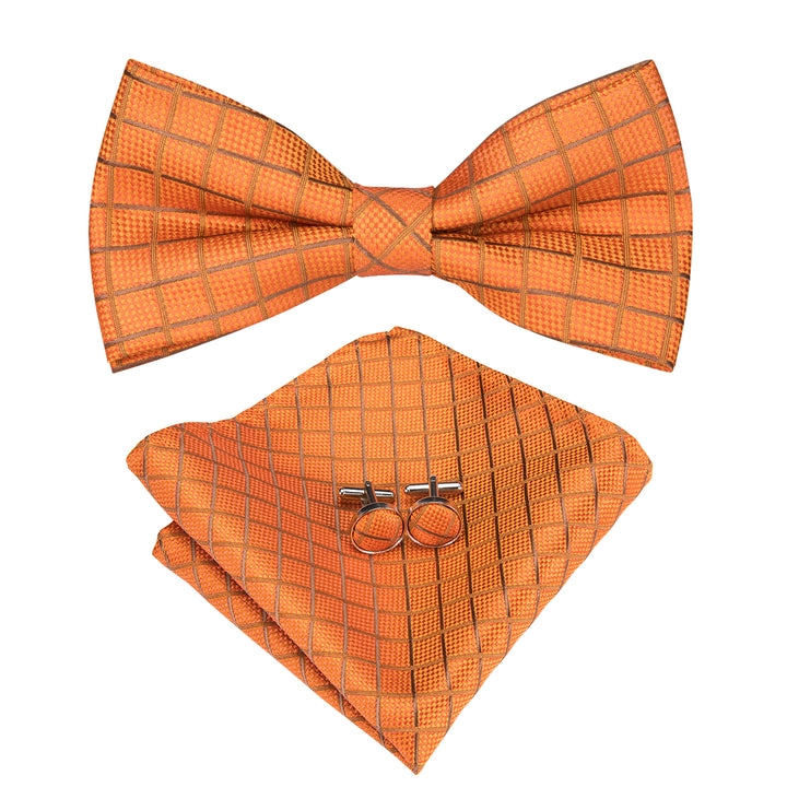 Ties2you Plaid Orange Bowtie Pre-tied Casual Bow Tie Handkerchief Cufflinks Set for Men