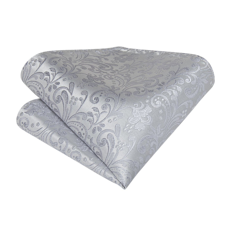 New Silver Floral Silk Cravat Woven Ascot Tie Pocket Square Handkerchief Suit Set (4601472319569)