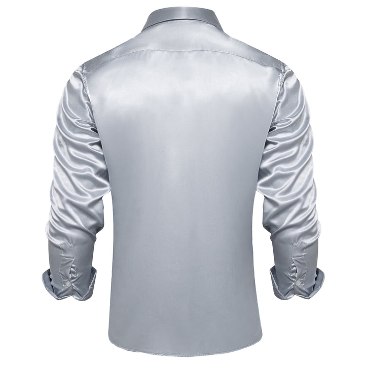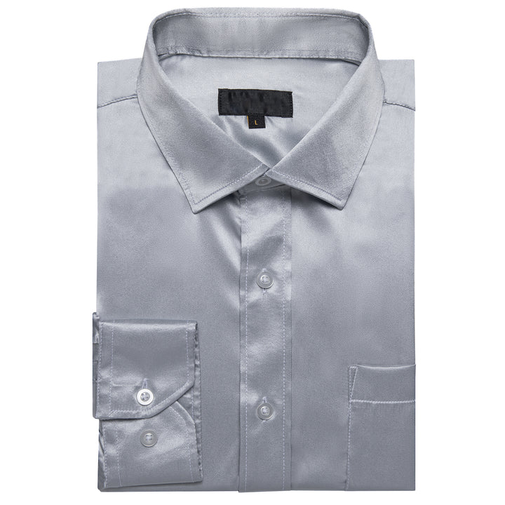 Ties2you Grey Satin Dress Shirts Mens Solid Long Sleeve Button Down Formal Shirt