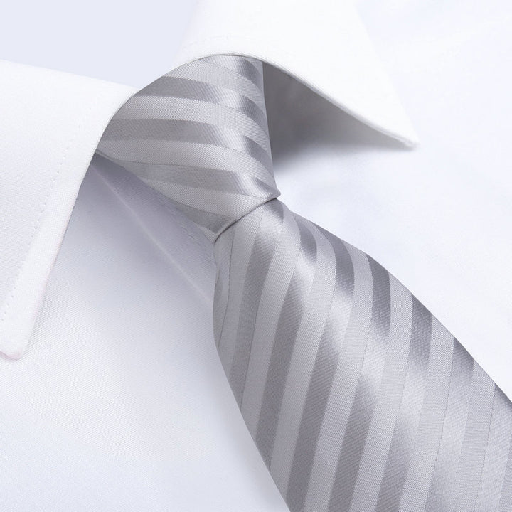 Ties2you Formal Necktie Silver Striped Business Dress Tie Handkercheif Cufflinks Set