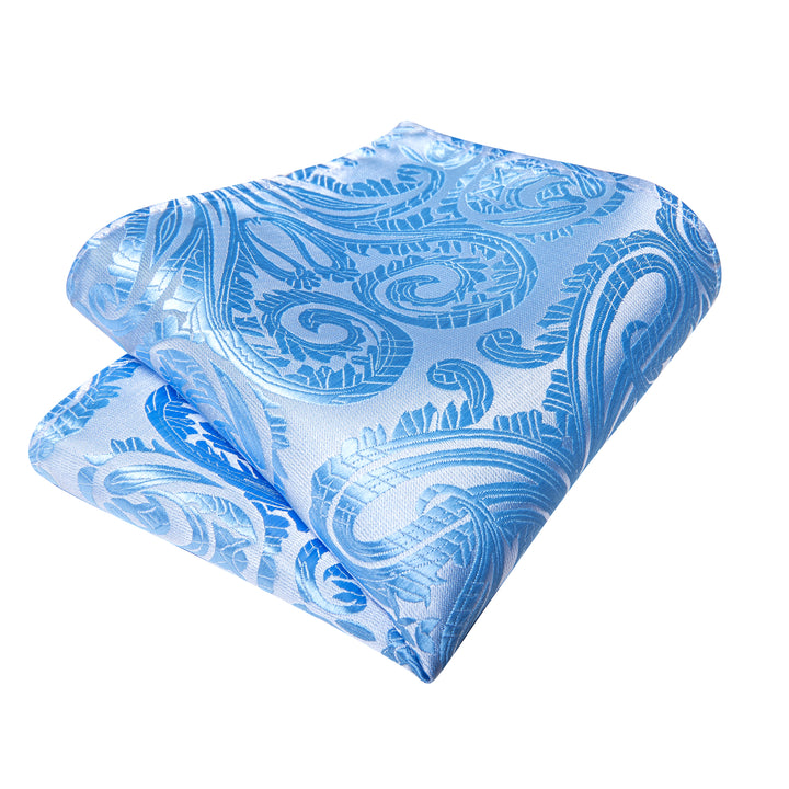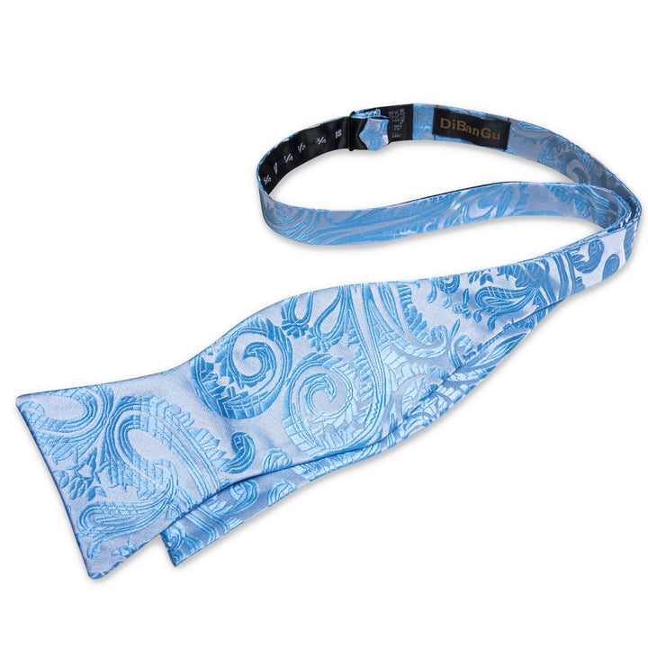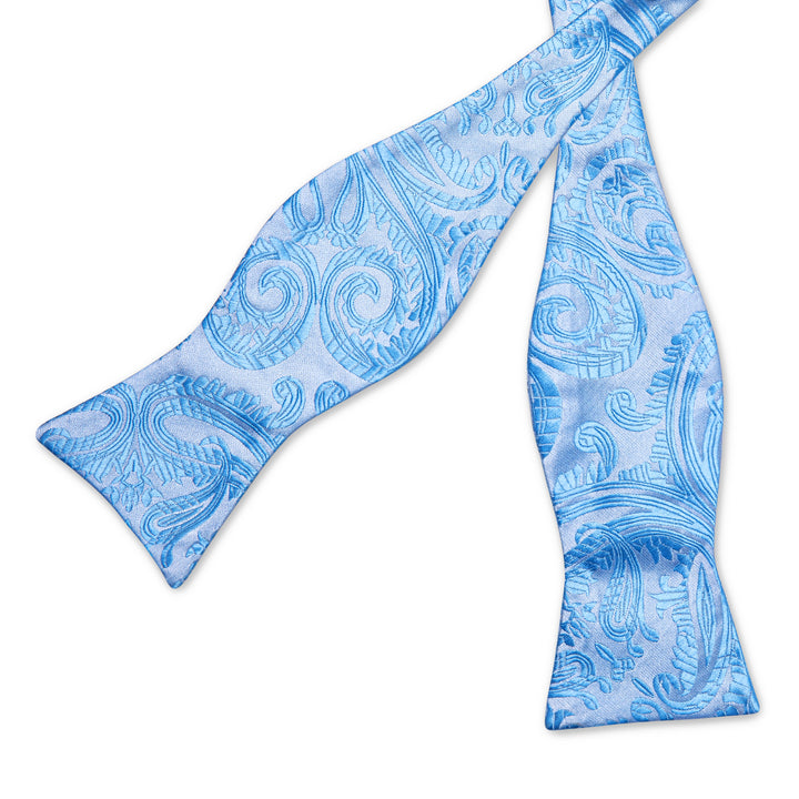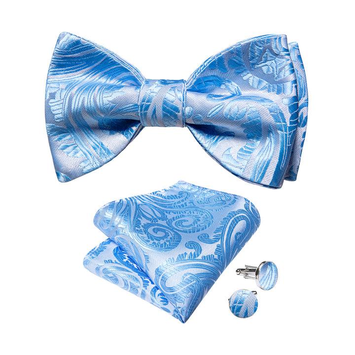 Ties2you Sky Blue Paisley Bow Tie Self-tie Tuxedo Bowtie Handkerchief Cufflinks Set