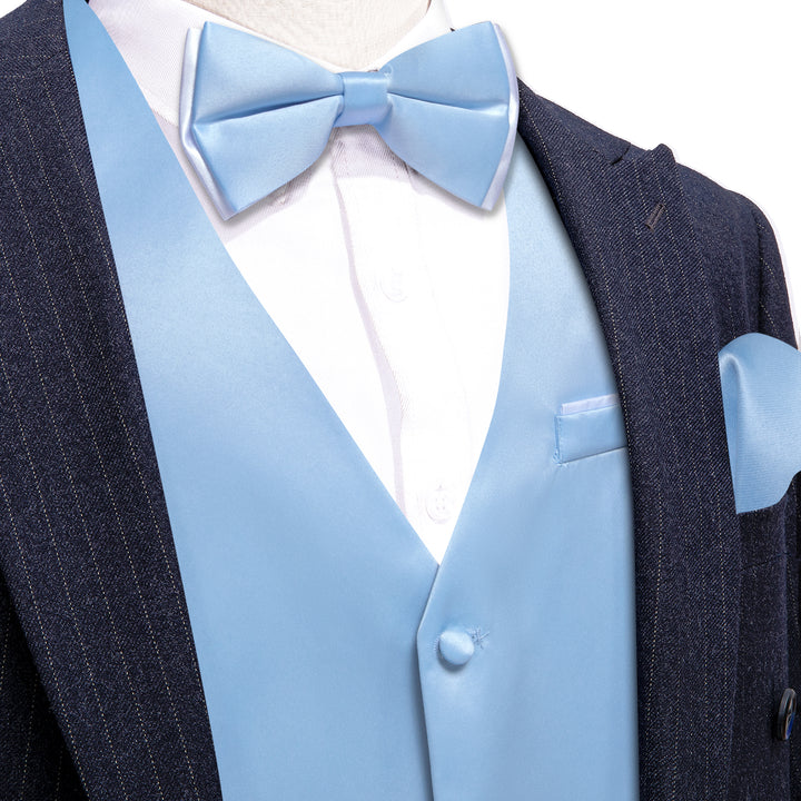 Sky Blue Solid Silk Men's Vest Bow Tie Set Waistcoat Suit Set