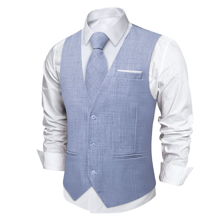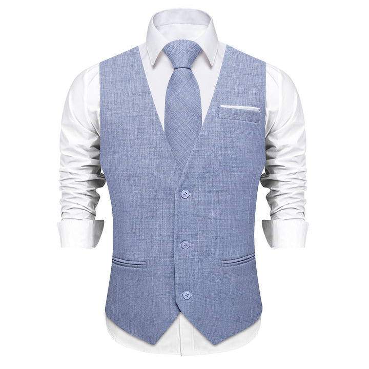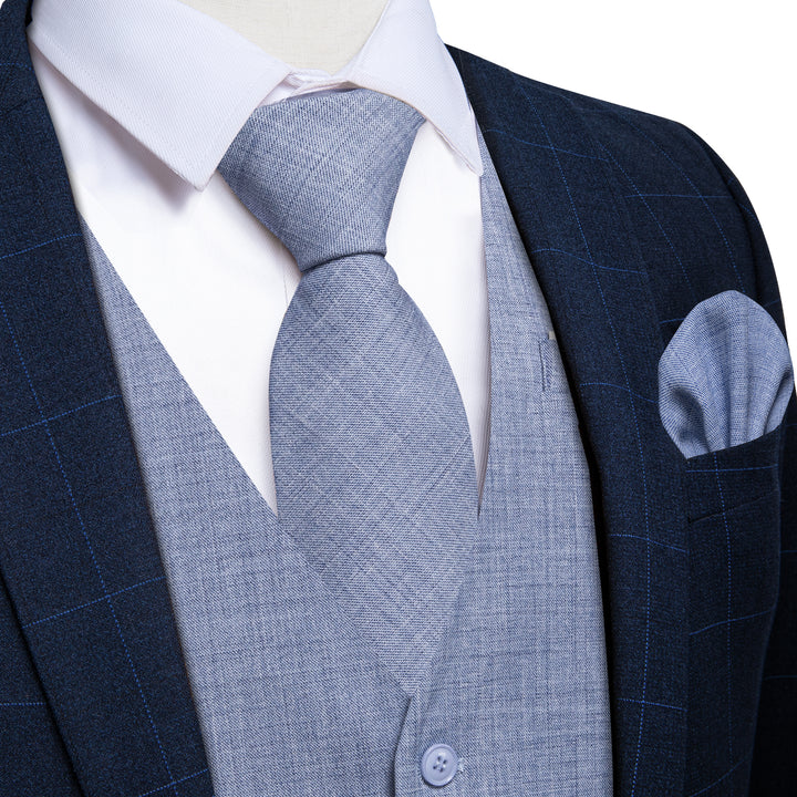 SteelBlue Solid Jacquard Men's Vest Hanky Cufflinks Tie Set
