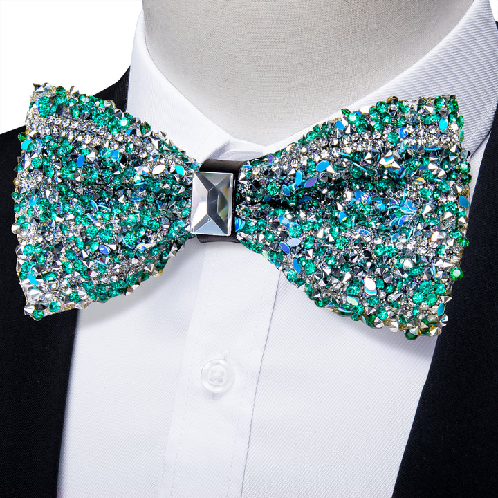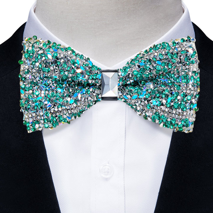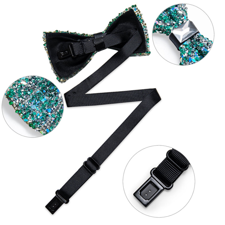 Teal Imitated Crystal Novelty Bow Tie for Men Pre-tied Bowtie for Party