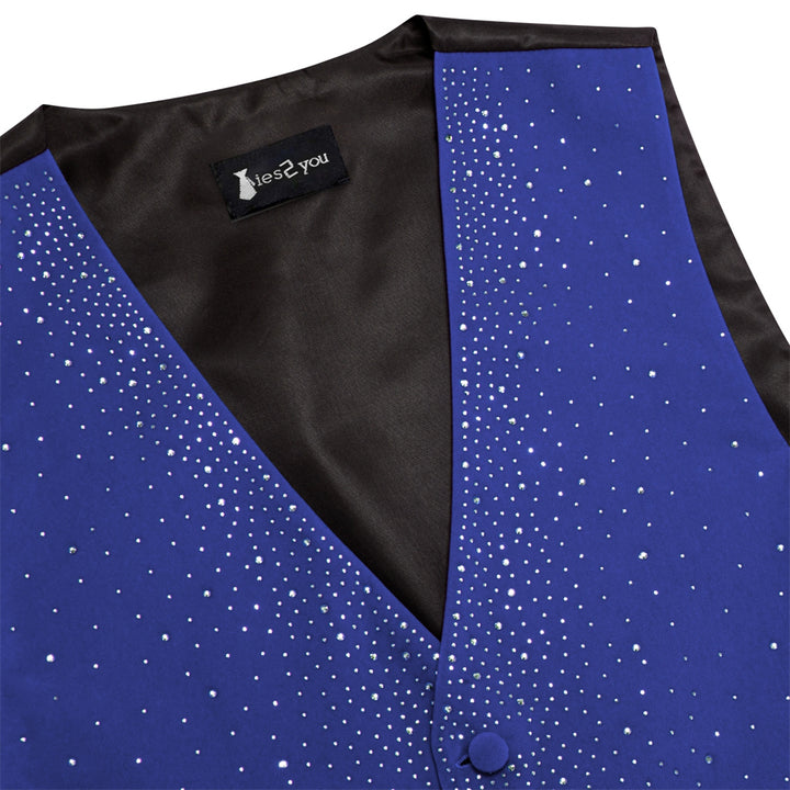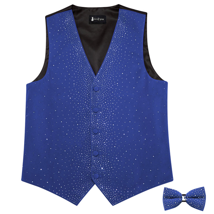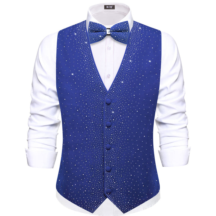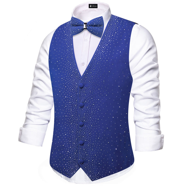 Tie2you Navy Blue Rhinestone Solid Velvet V-Neck Mens Vest Bowtie Set