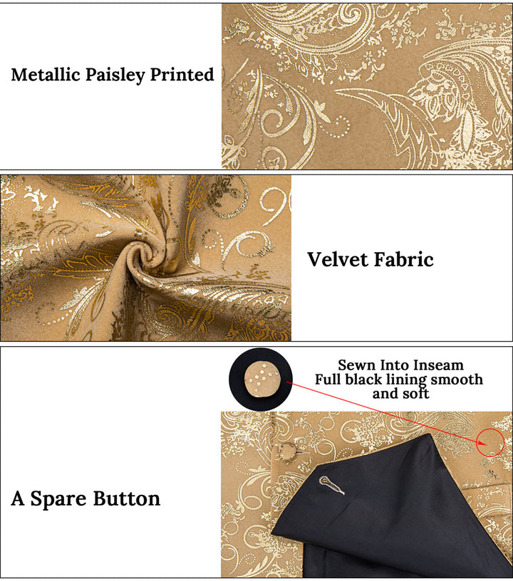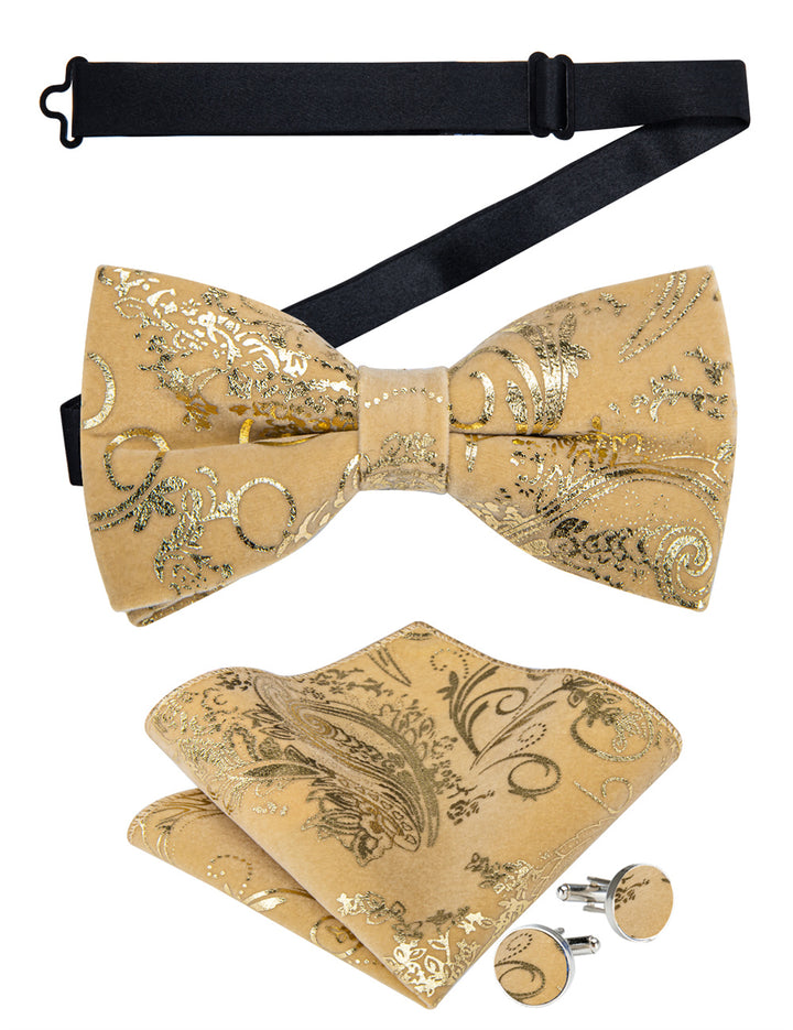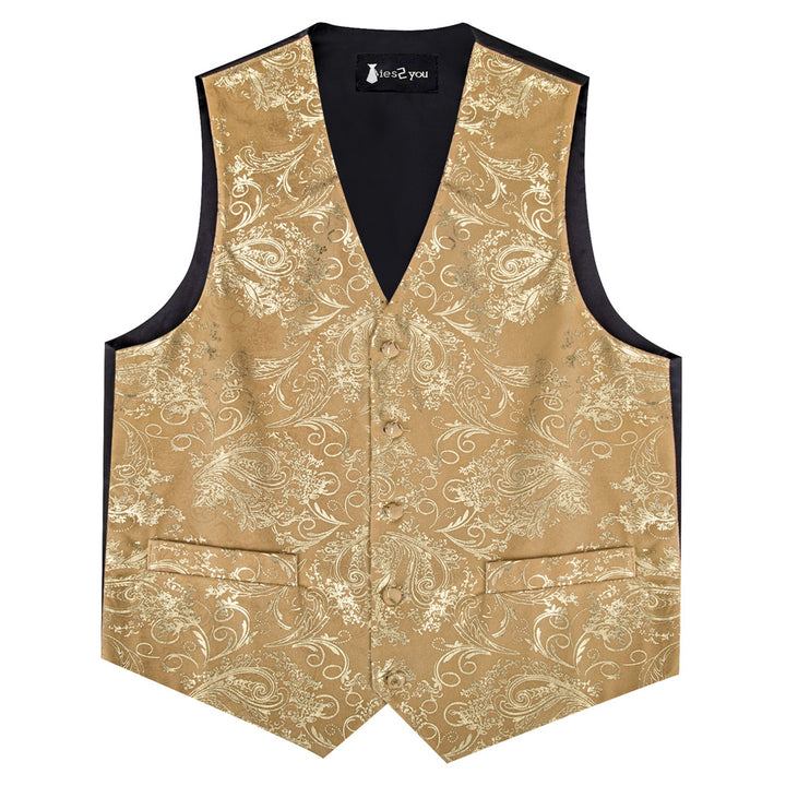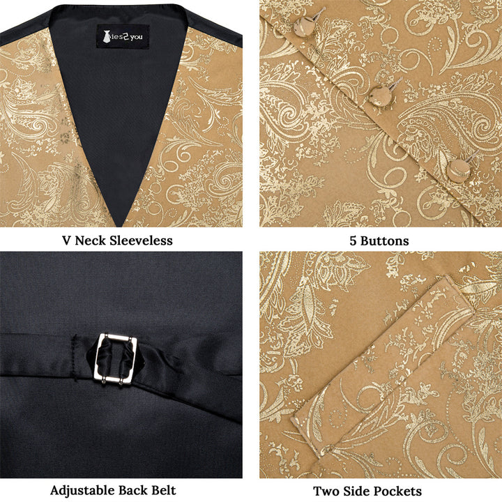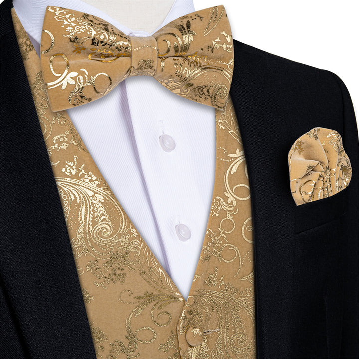 Tie2you Velvet Vest Champagne Paisley V-Neck Mens Vest Bowtie Set