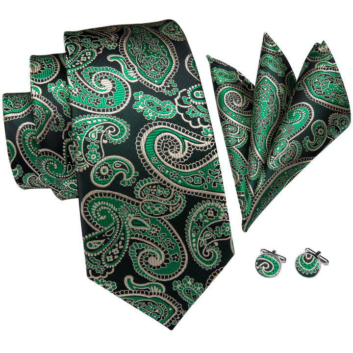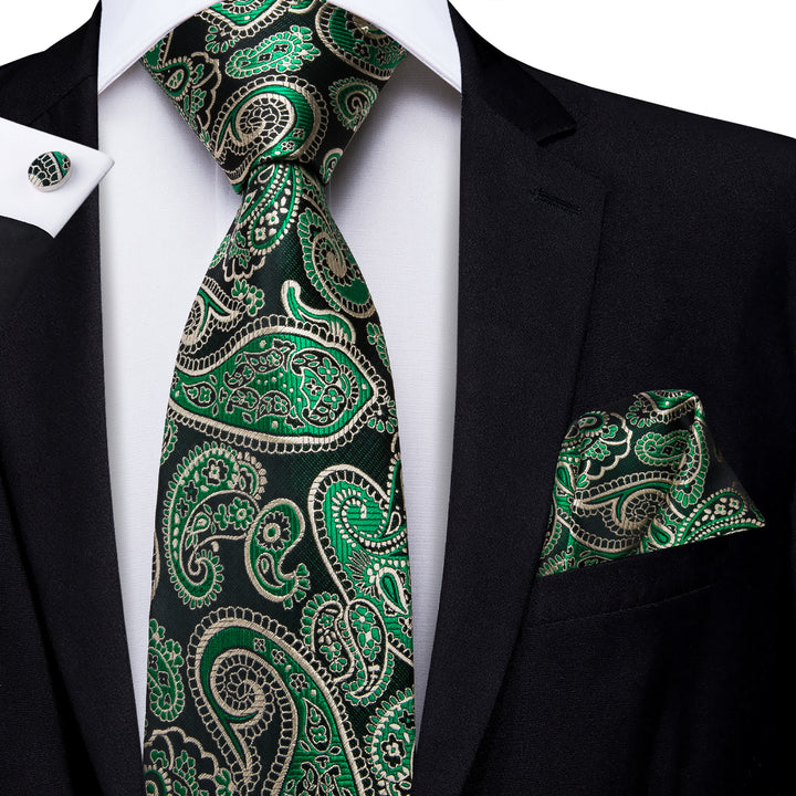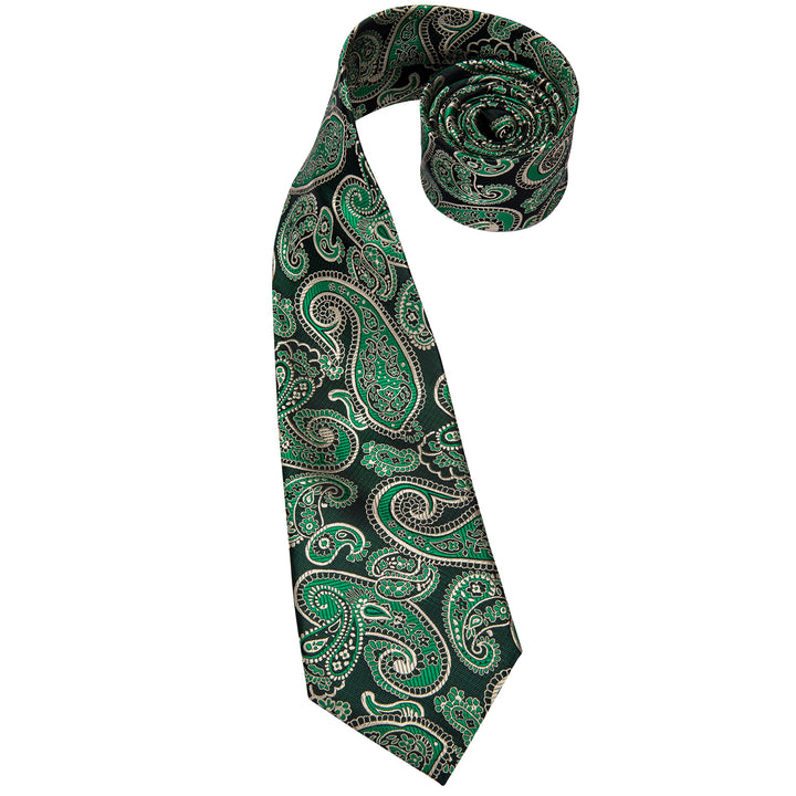 Ties2you Extra Long Necktie 63 Inches Green Paisley Tie Pocket Square Cufflinks Set