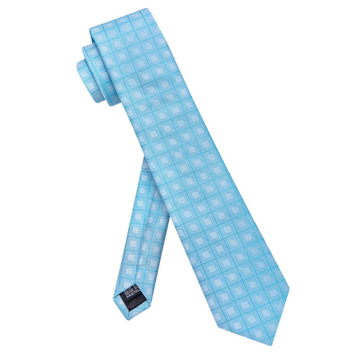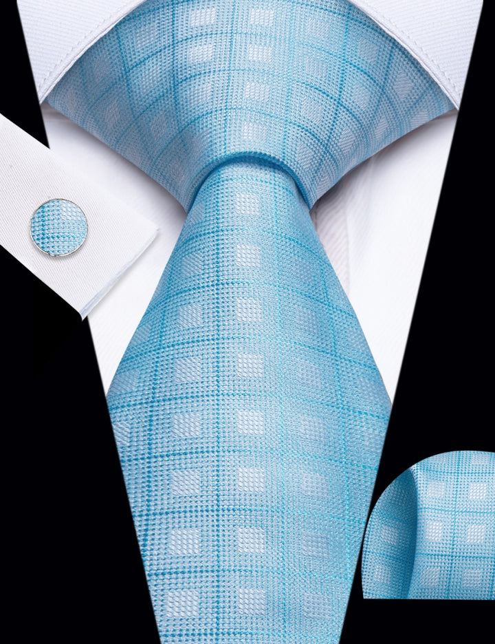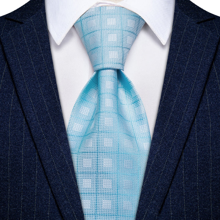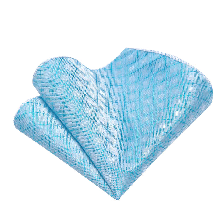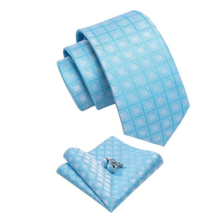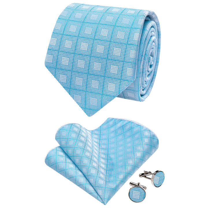 Ties2you Baby Blue Plaid Necktie Pocket Square Cufflinks Set Wedding