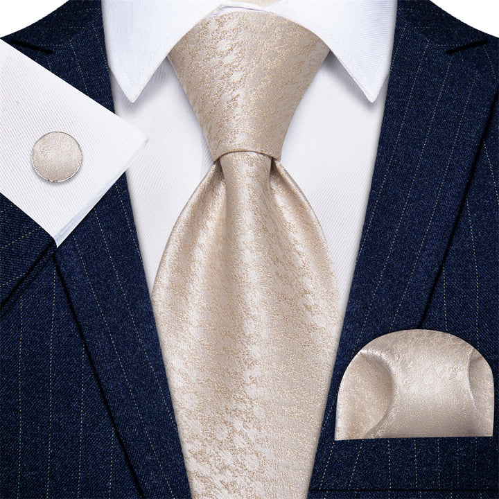 Ties2you Bisque White Color Tie Novelty Jacquard Mens Wedding Tie Set