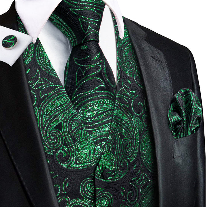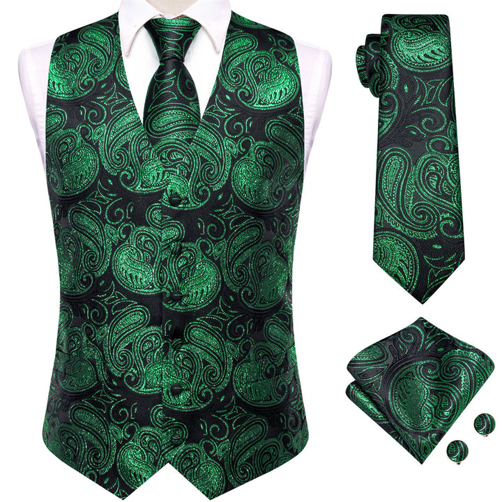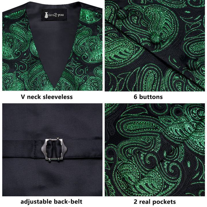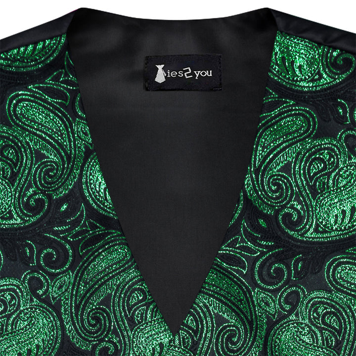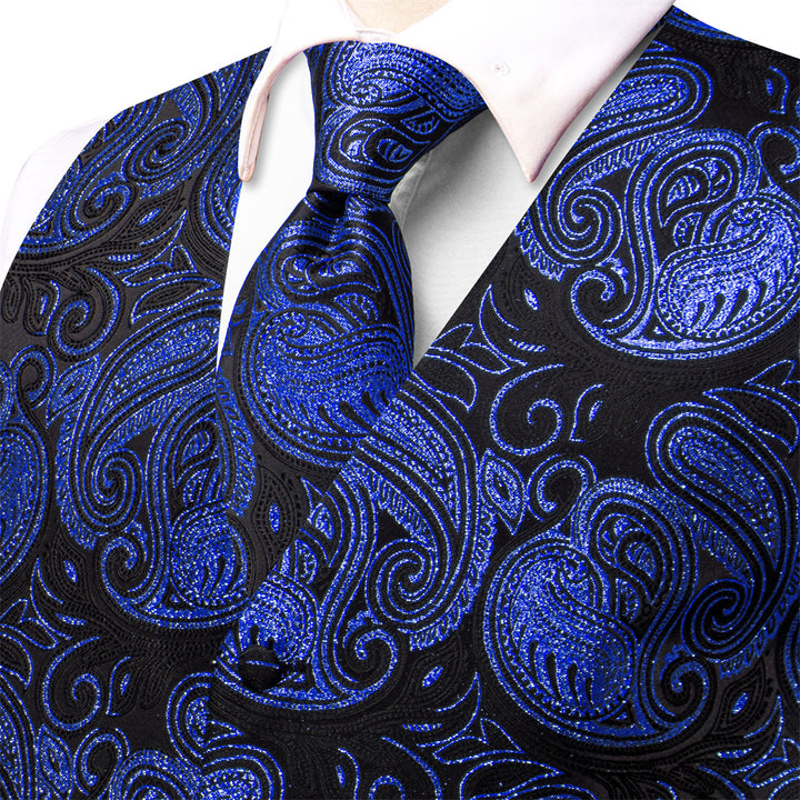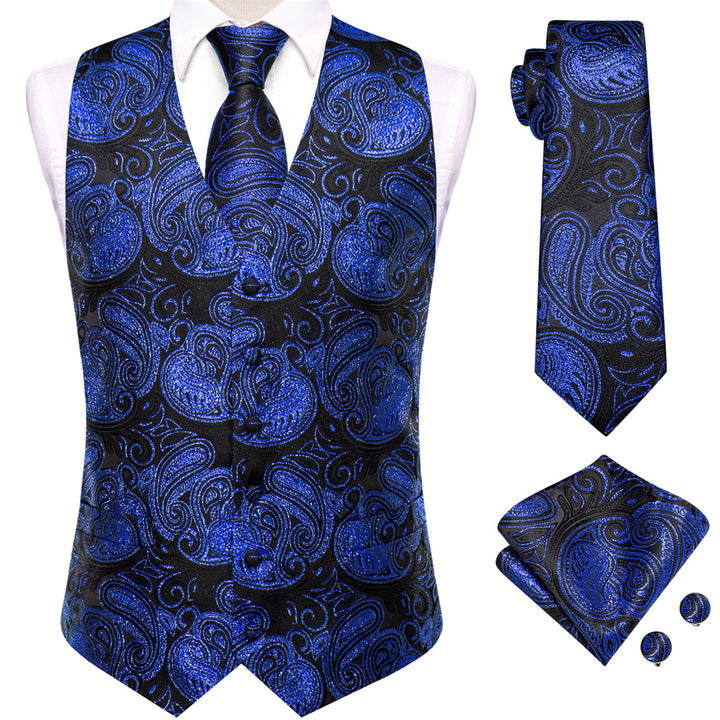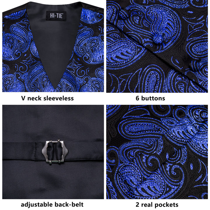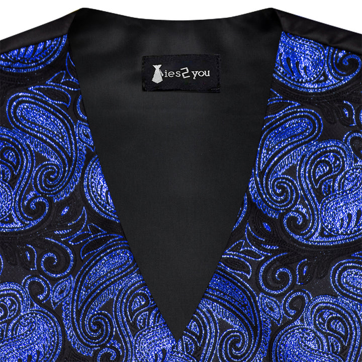 Ties2you Black Blue Paisley Pattern V-Neck Silk Vest Necktie Set