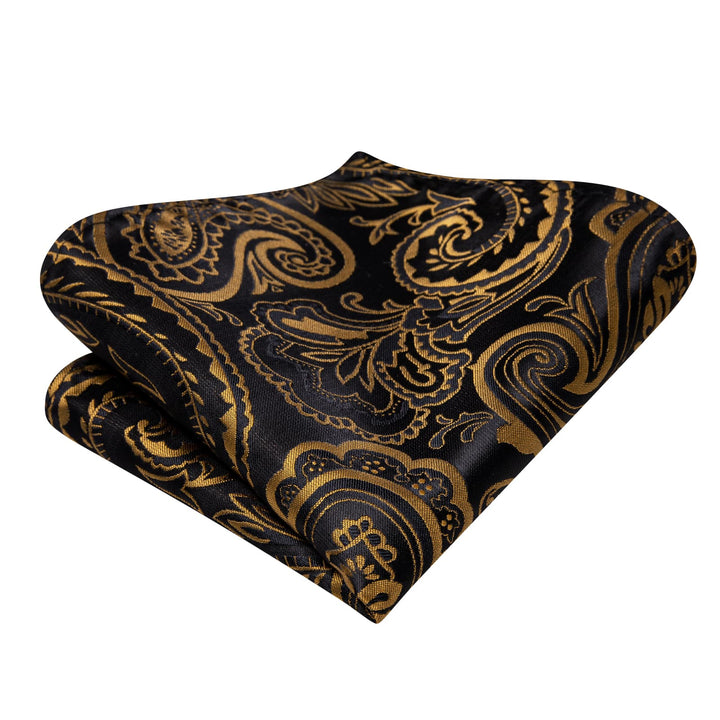 Ties2you Black Bow Tie Gold Paisley Silk Mens Dress Self-Bow Ties Handkerchief Cufflinks Set
