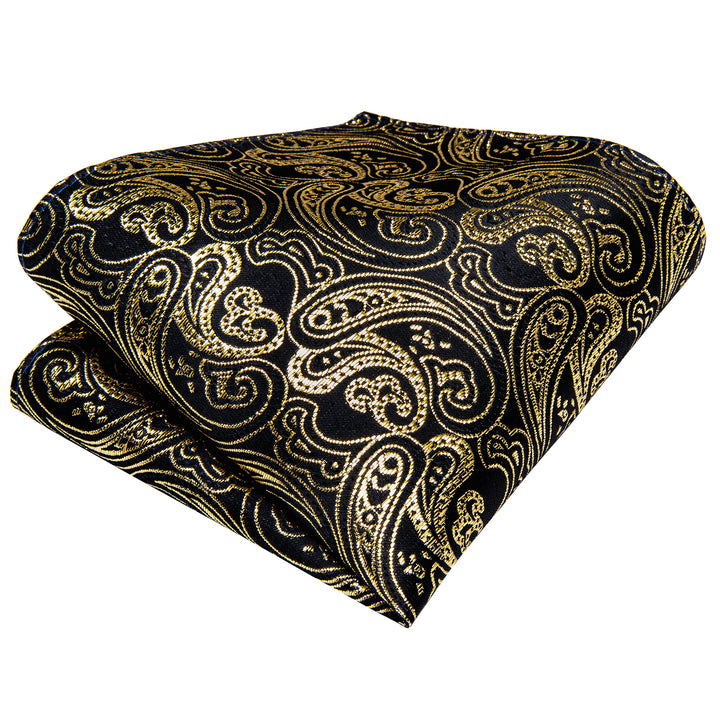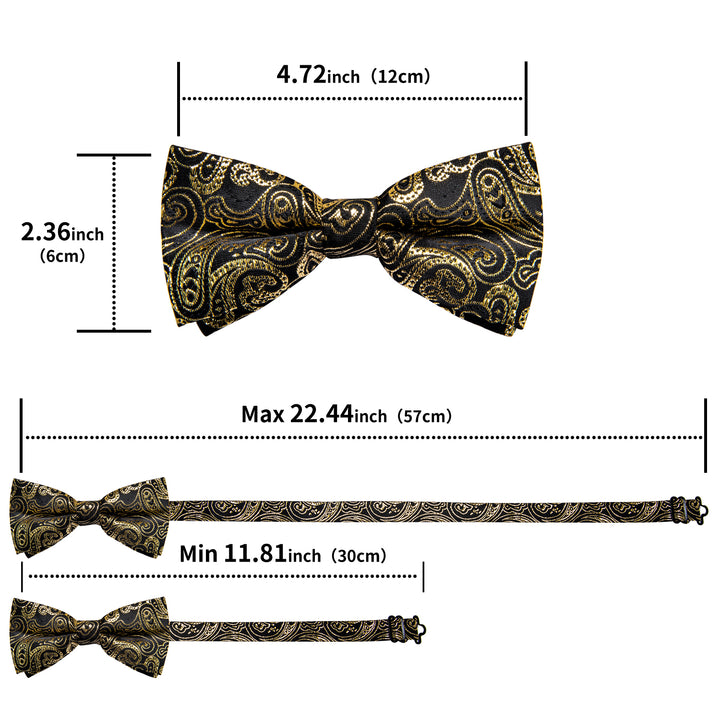 Ties2you Gold Paisley Bowtie Pre-Tied Black Formal Bow tie Pocket Square Cufflinks Set
