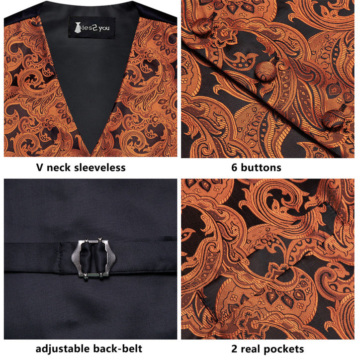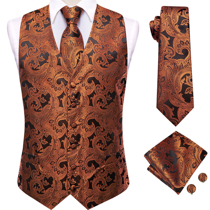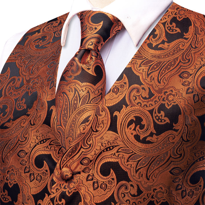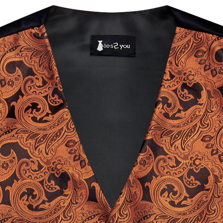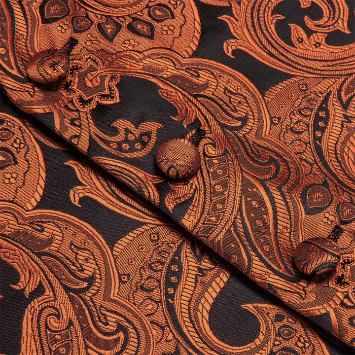 Ties2you Black Gold Paisley Pattern V-Neck Silk Vest Necktie Set