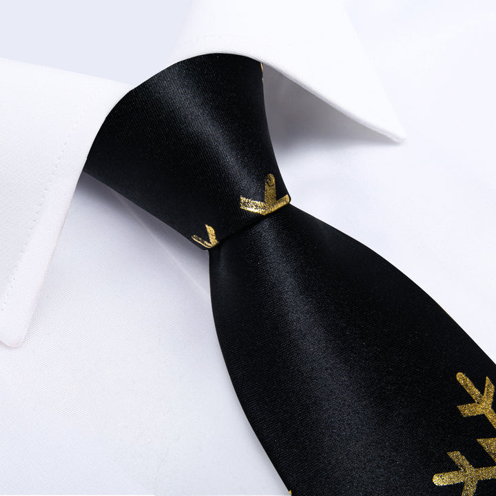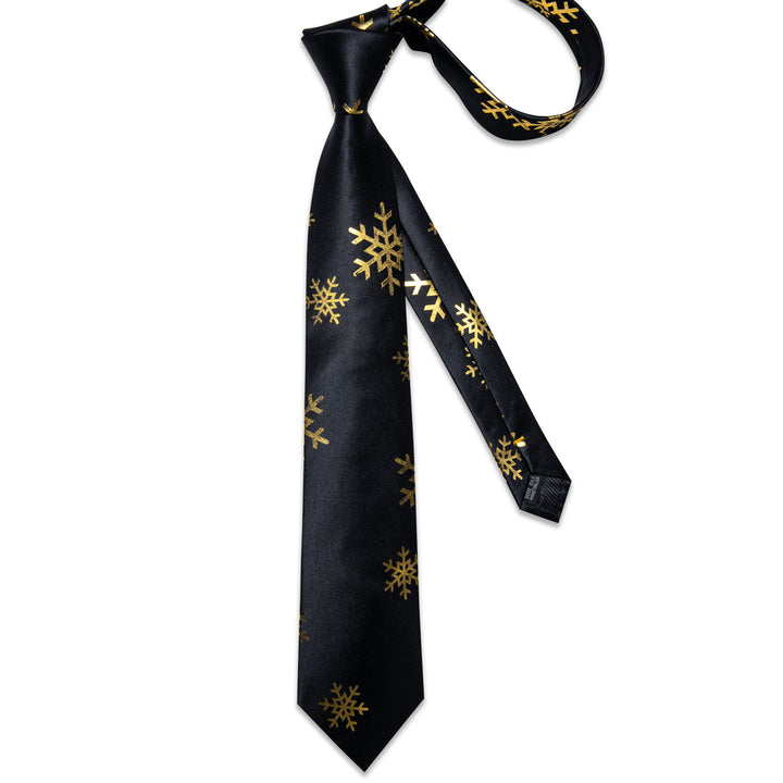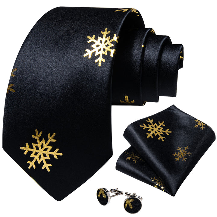 Ties2you Black Necktie for Men Snowflake Silk Christmas Tie Hanky Cufflinks Set for Party