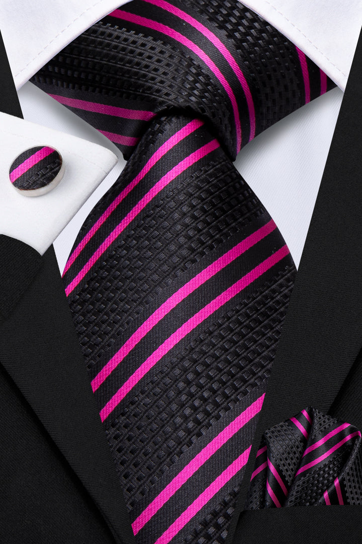 Ties2you Black Purple Striped Men's Necktie Hanky Cufflinks Set