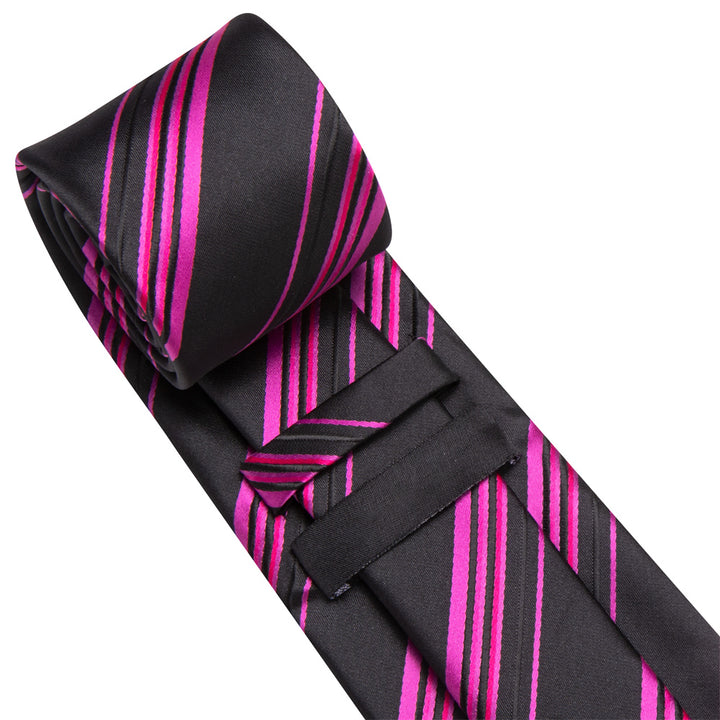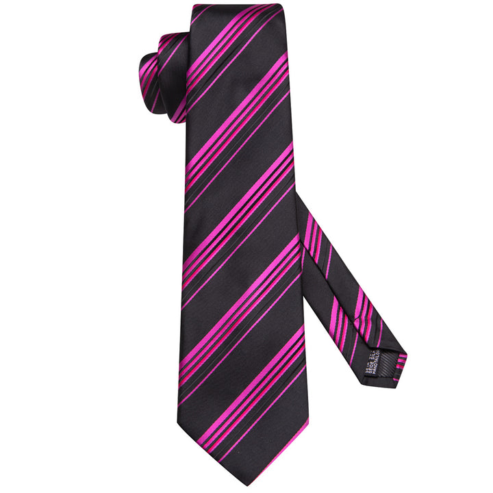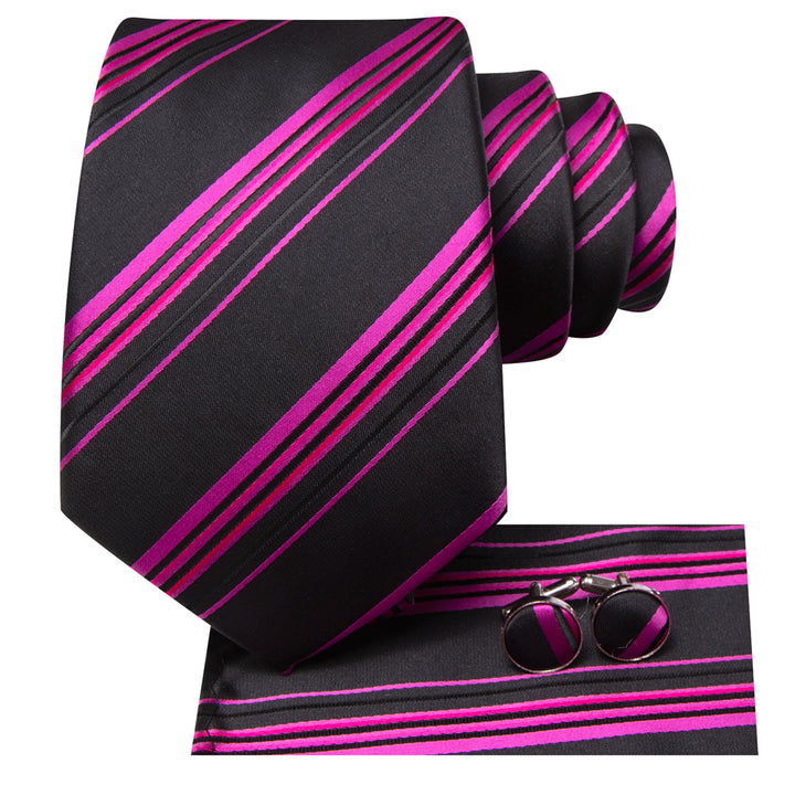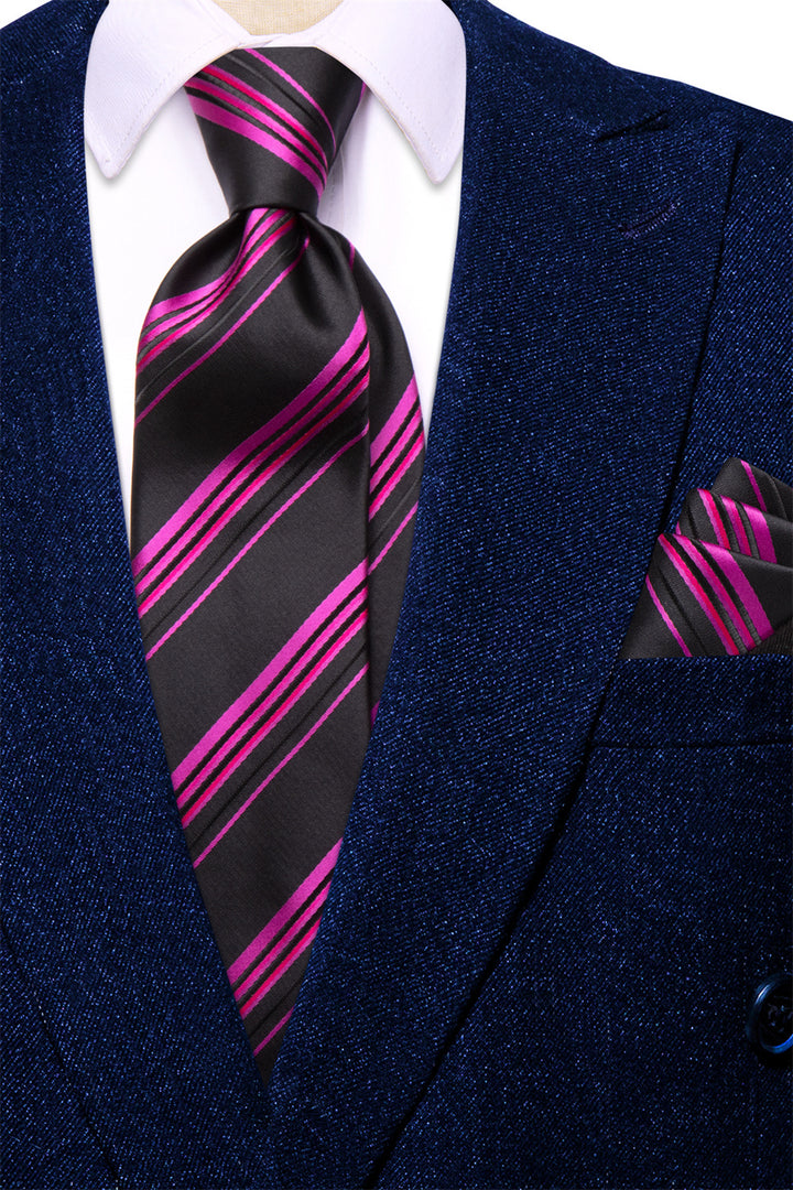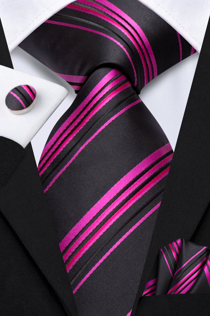 Ties2you Black Purple Striped Men's Tie Pocket Square Cufflinks Set