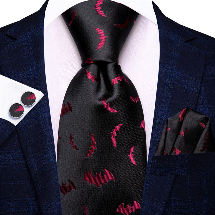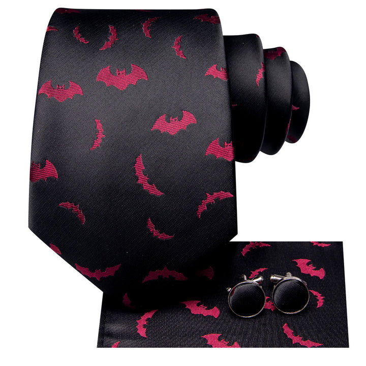 Ties2you Black Red Bat Necktie Hanky Cufflinks Set