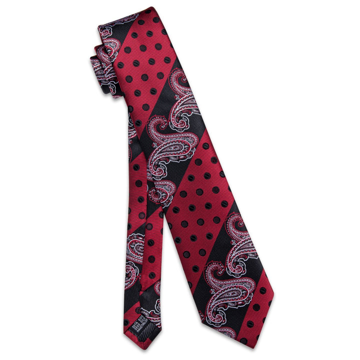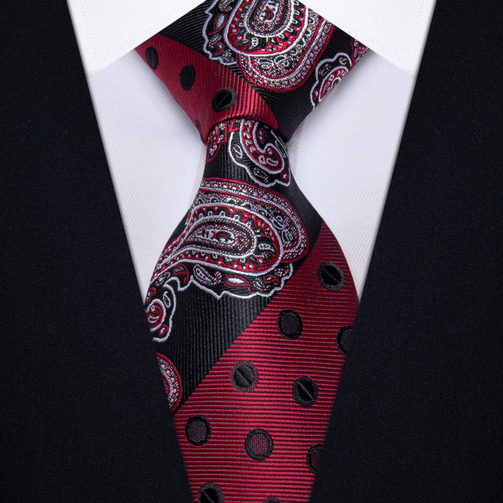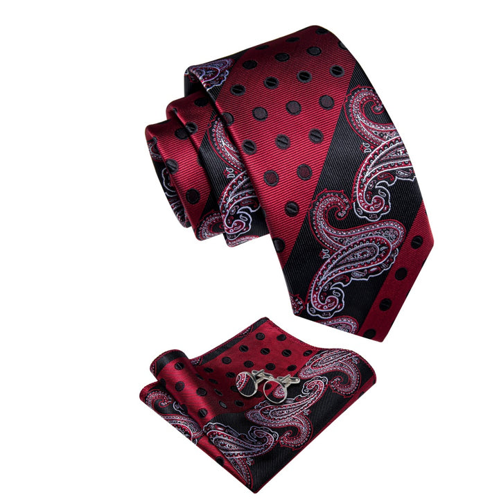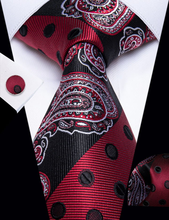 Ties2you Black Red Silver Novelty TIe Polka Dot Tie Hanky Cufflink Set