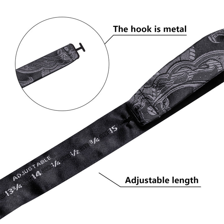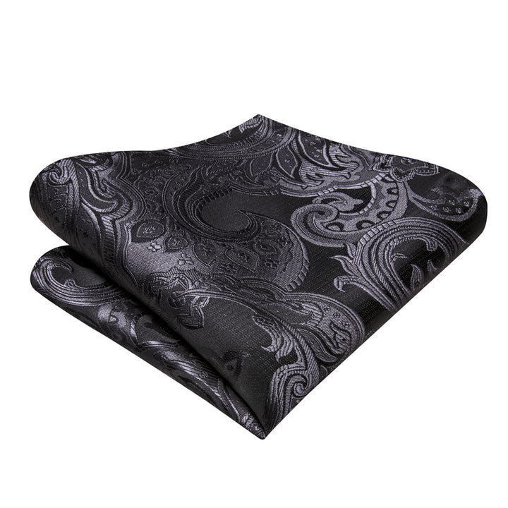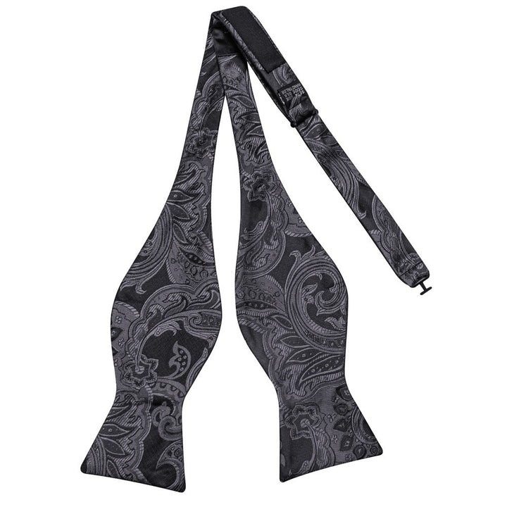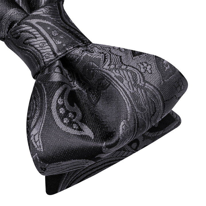 Ties2you Black Silver Paisley Self-tied Bow Tie Pocket Square Cufflinks Set