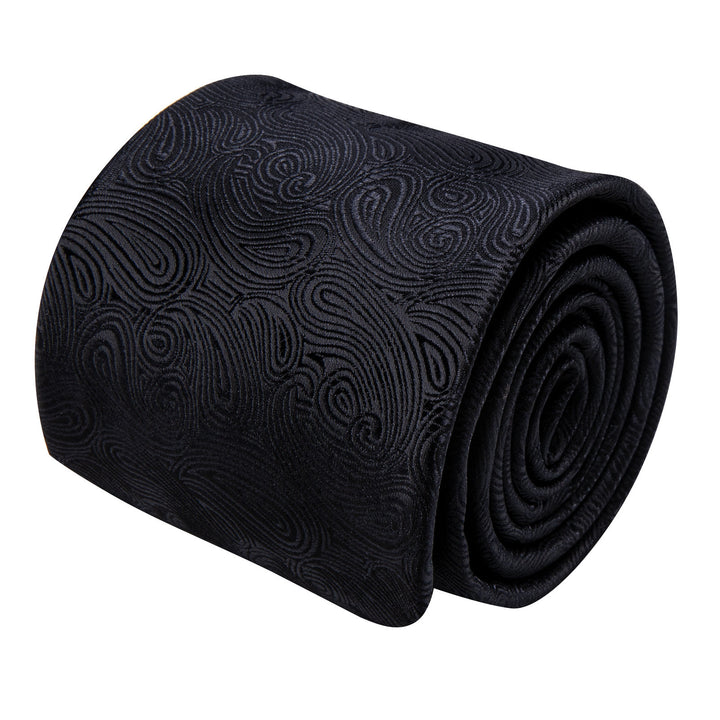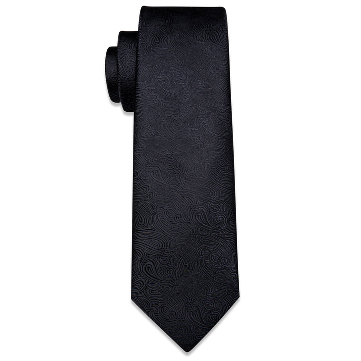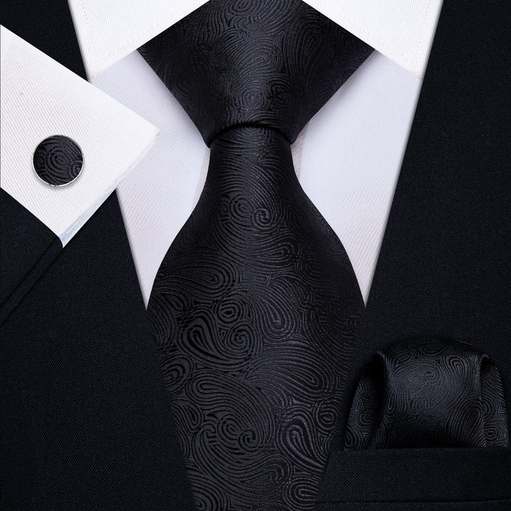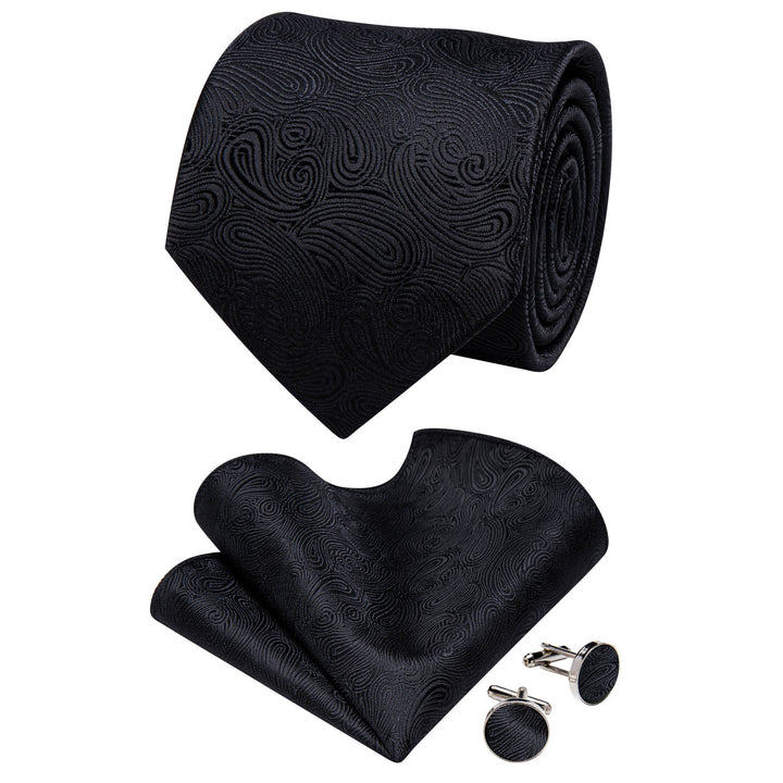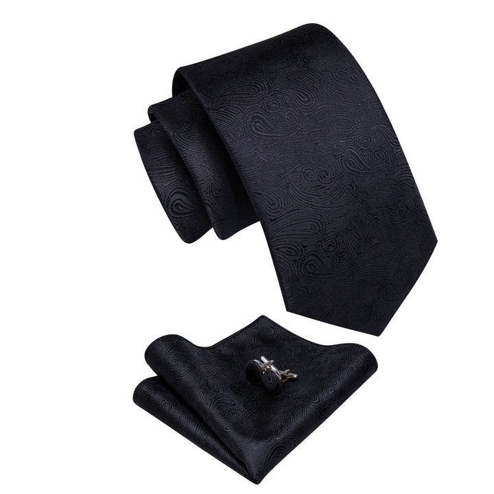 Ties2you Black Solid Necktie Mens Silk Woven Tie Handkerchief Cufflinks Set Formal