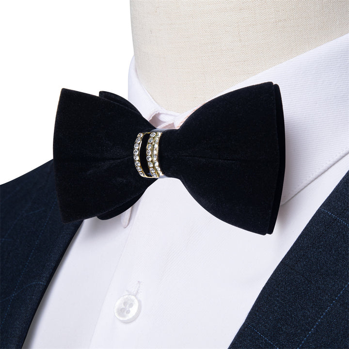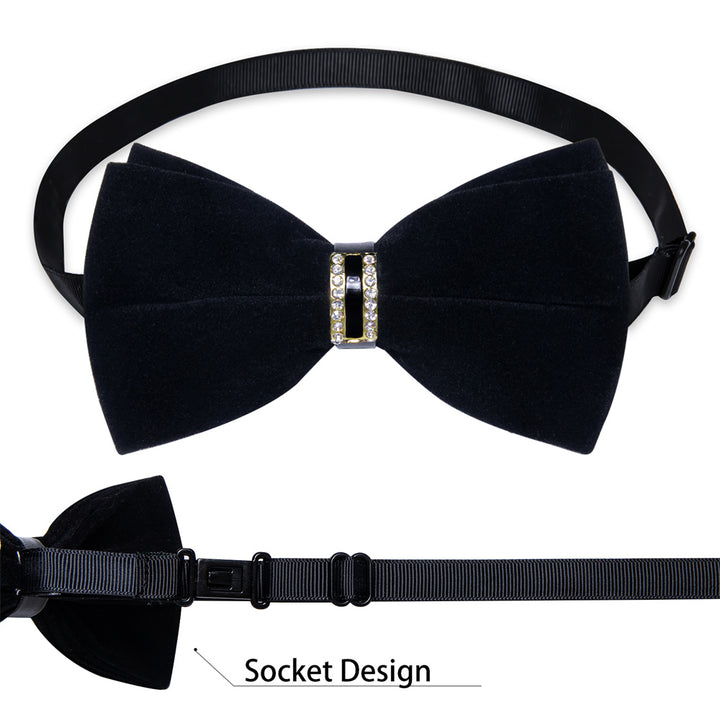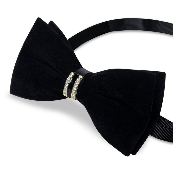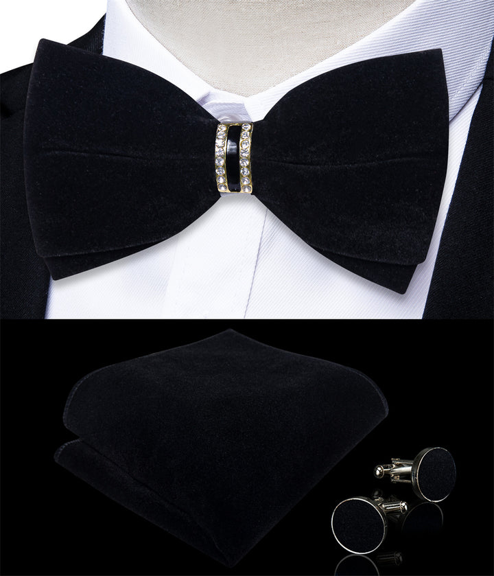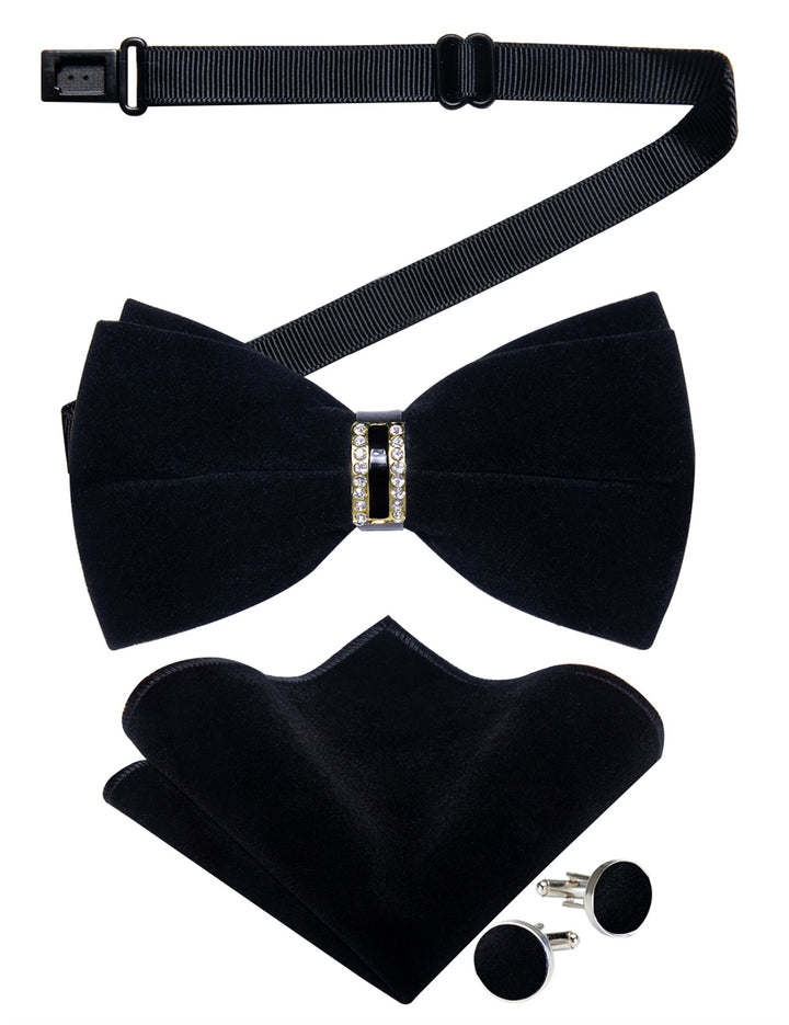 Ties2you Black Solid Pre-tied Velvet Bow Tie Hanky Cufflinks Set