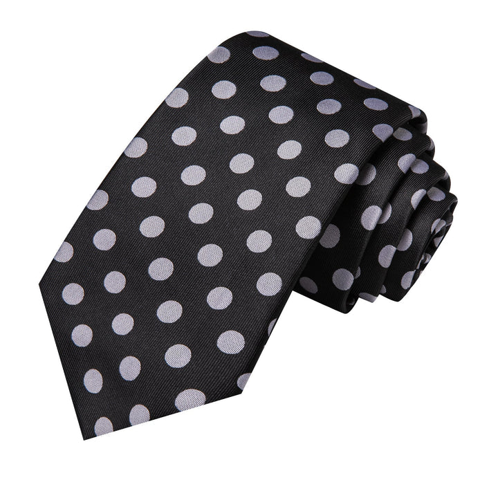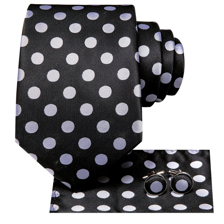 Ties2you Black Tie White Polka Dots Men's 70 Inches Extra Long Tie Handkerchief Cufflinks Set Classic