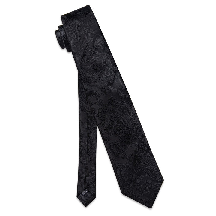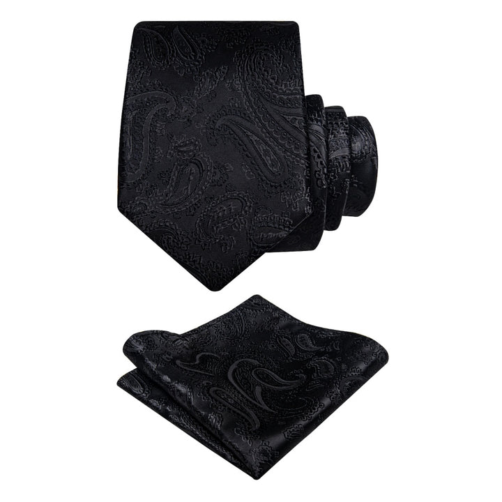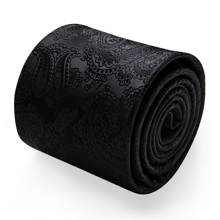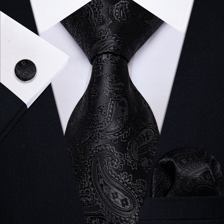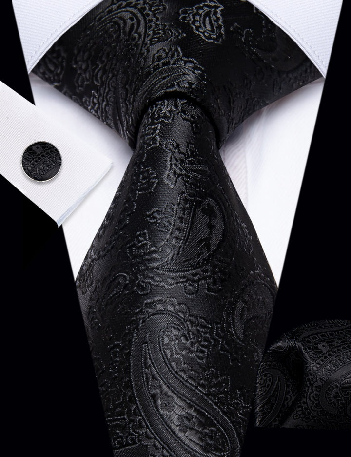 Ties2you Black Ties Paisley Jacquard Wedding Tie Hanky Cufflinks Set