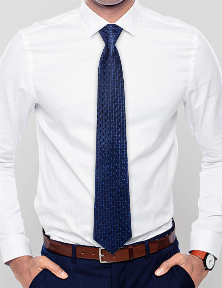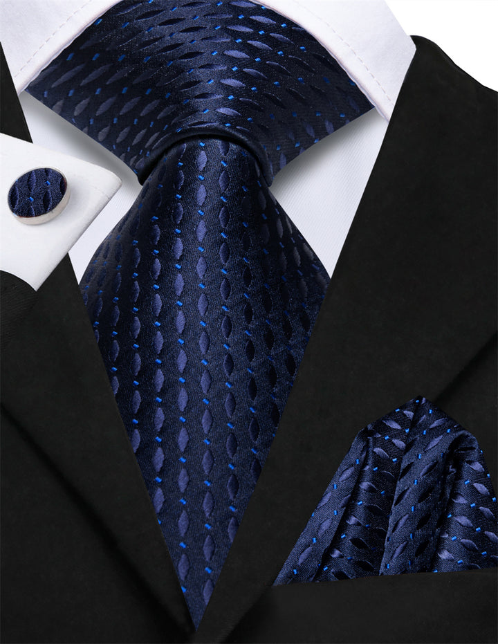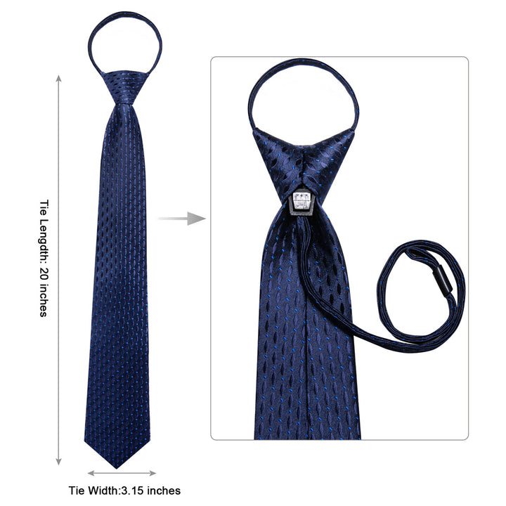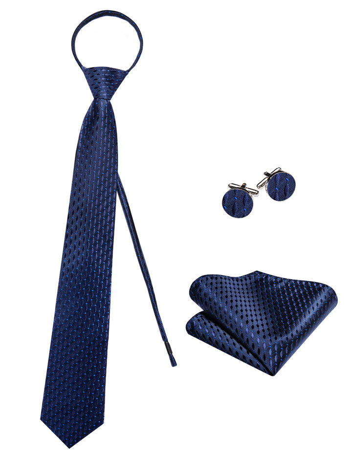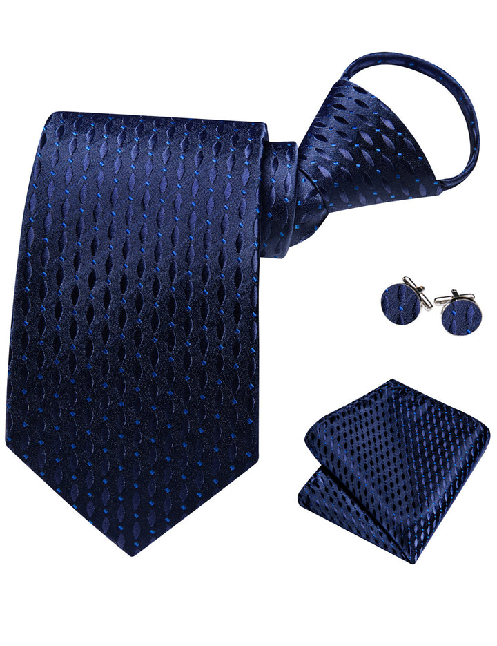 Ties2you Blue Geometric Lazy Mens Business Easy-pull Silk Tie Pocket Square Cufflinks Set