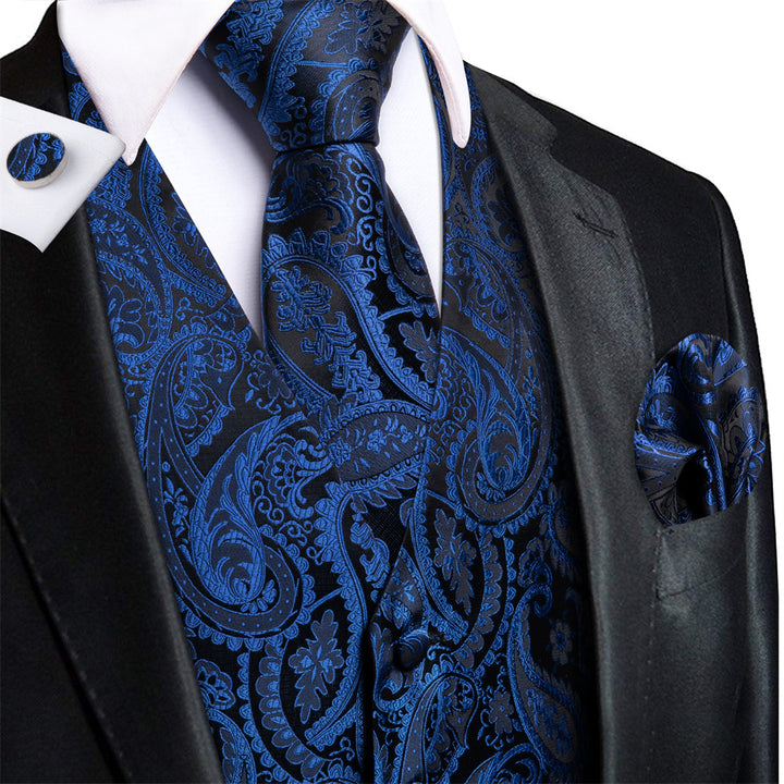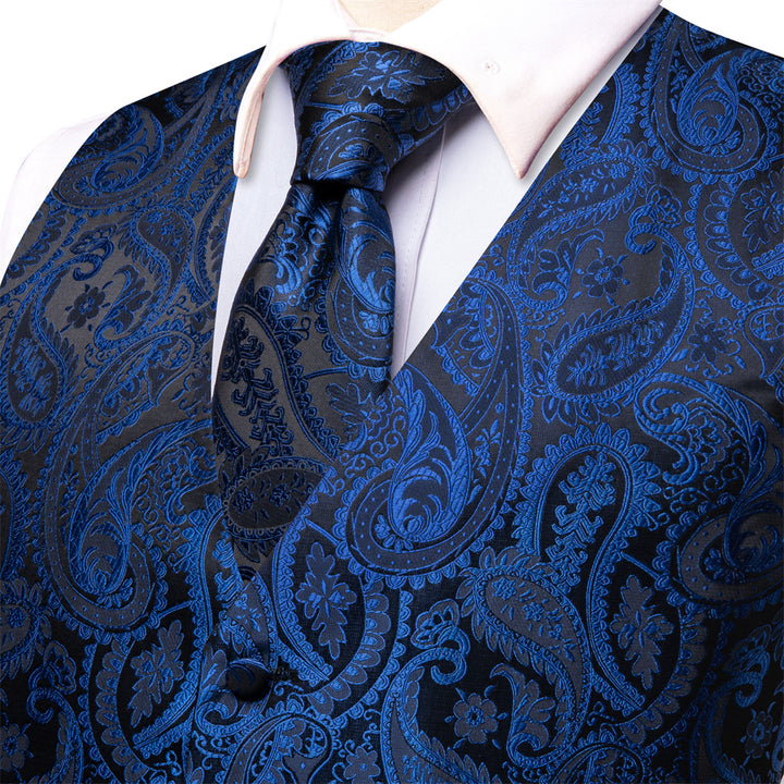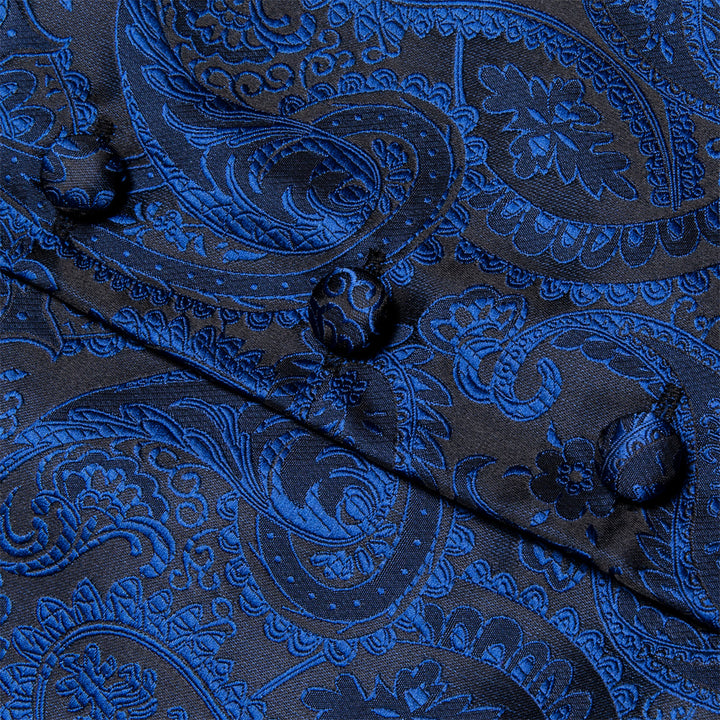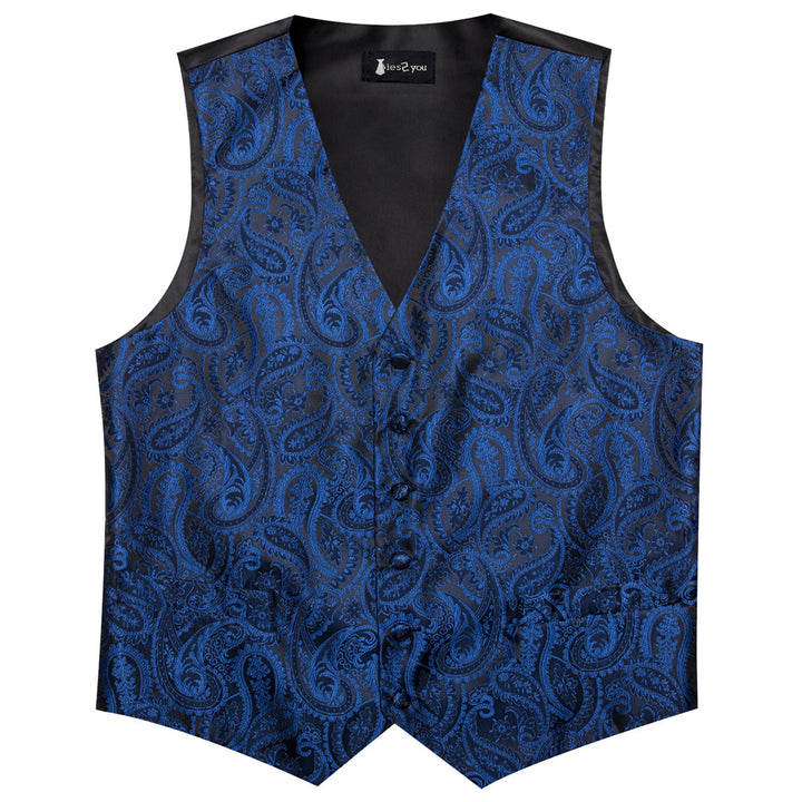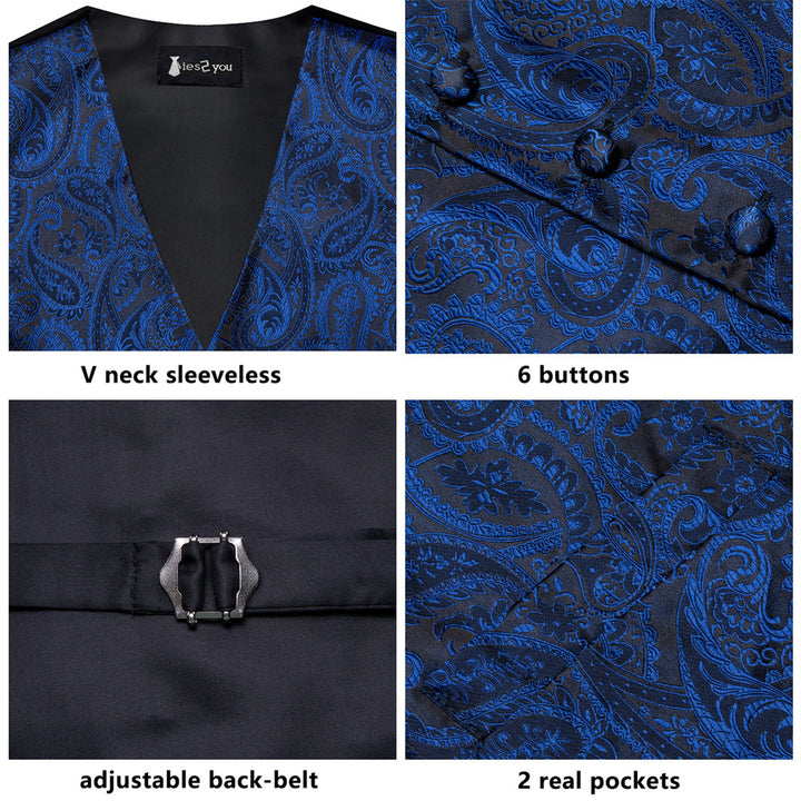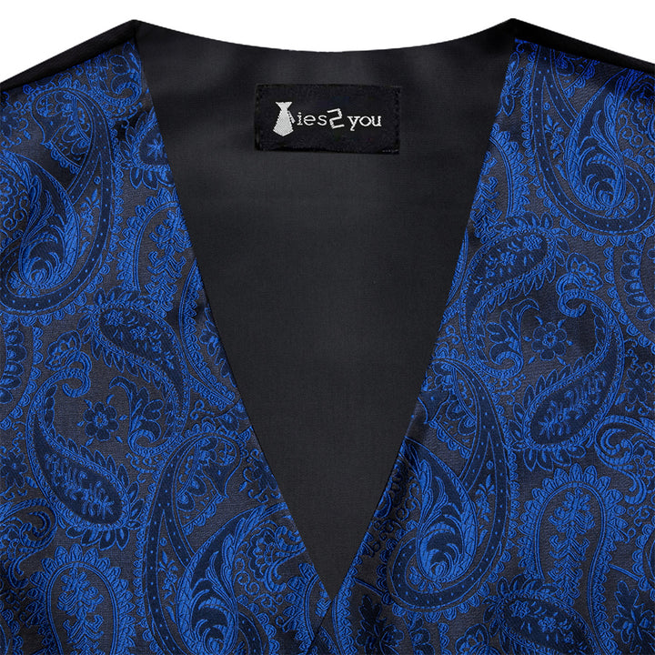 Ties2you Blue Paisley Pattern V-Neck Silk Vest Necktie Set