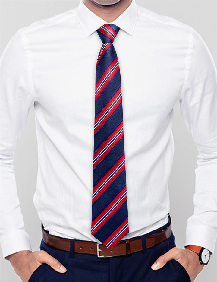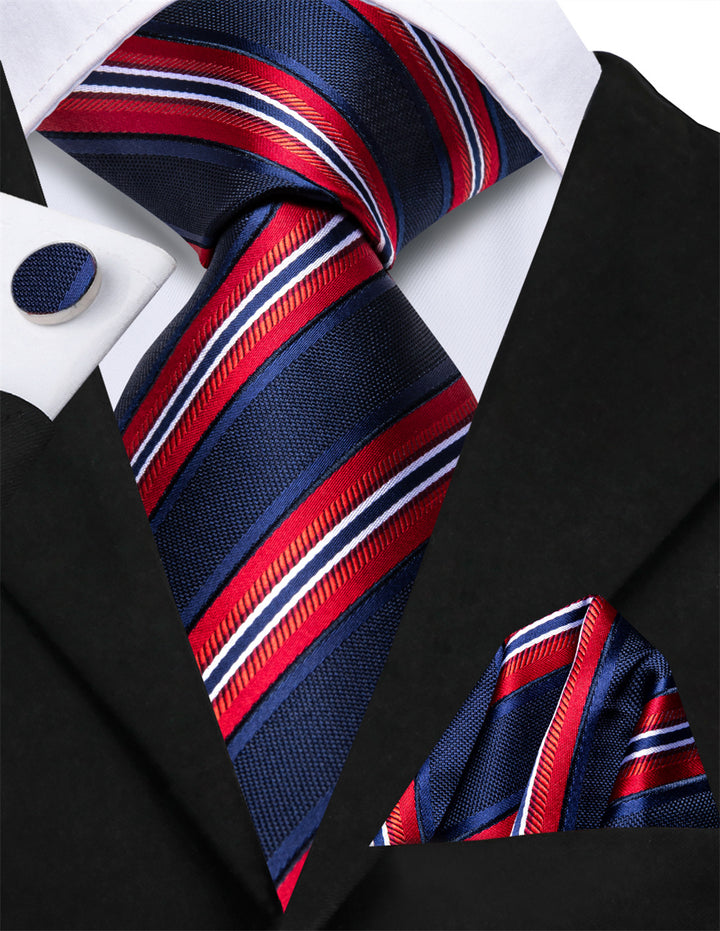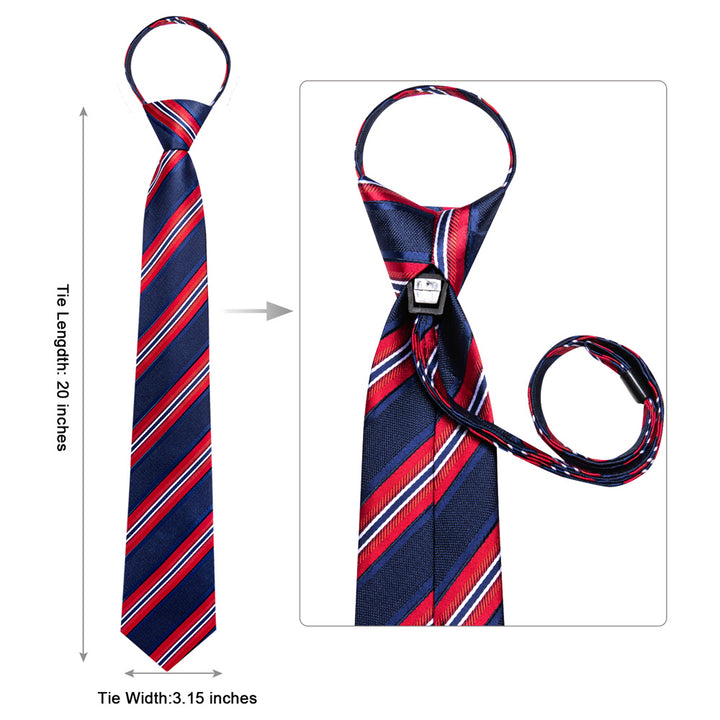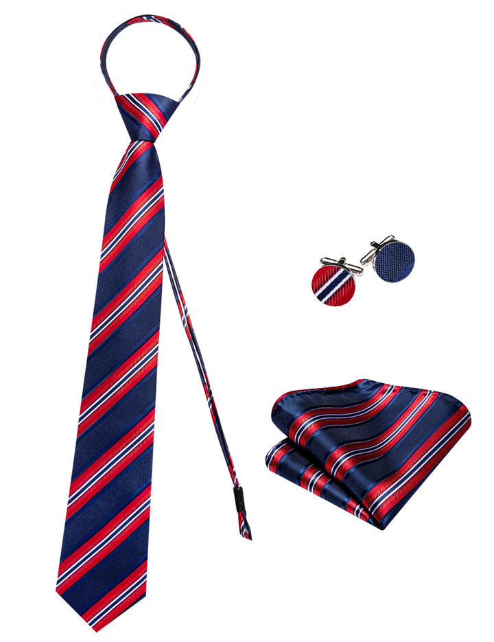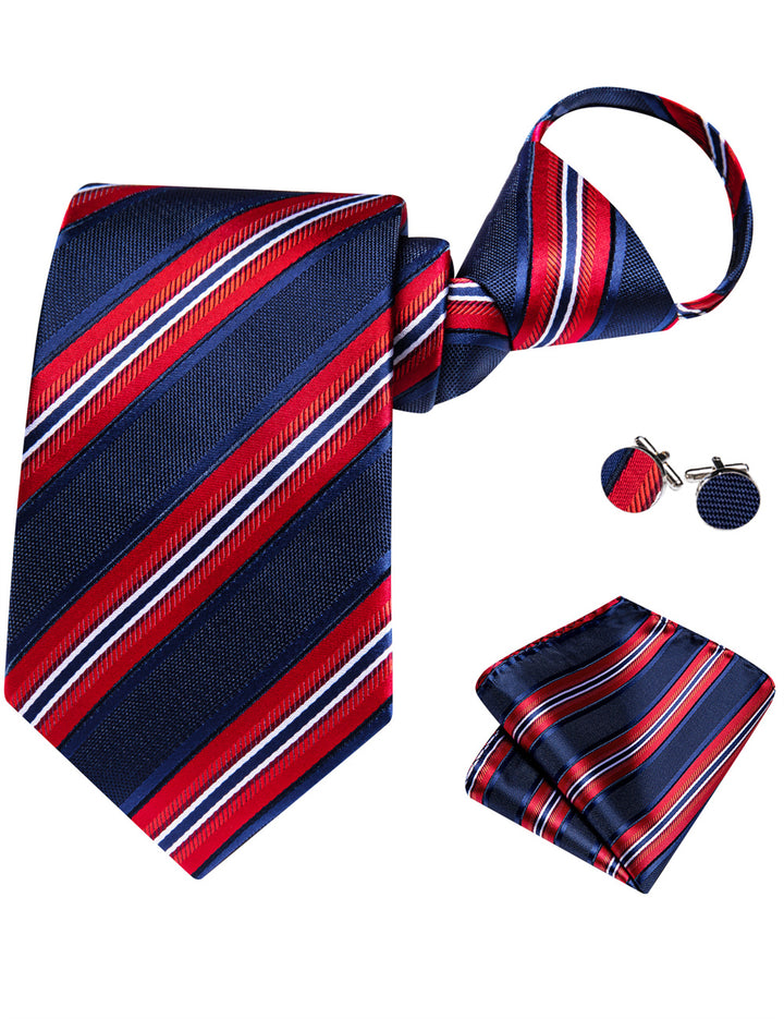 Ties2you Blue Red Two-LinksStriped Lazy Mens Business Easy-pull Tie Pocket Square Cufflinks Set