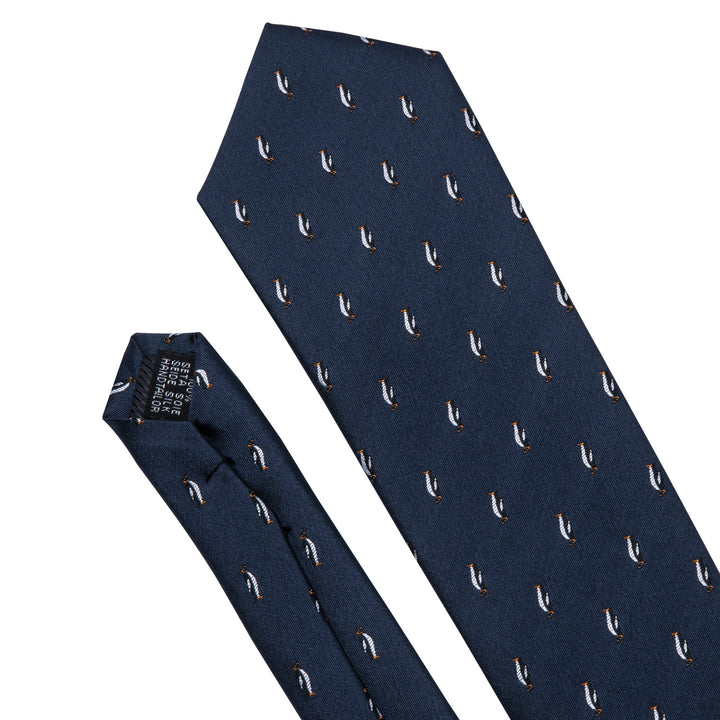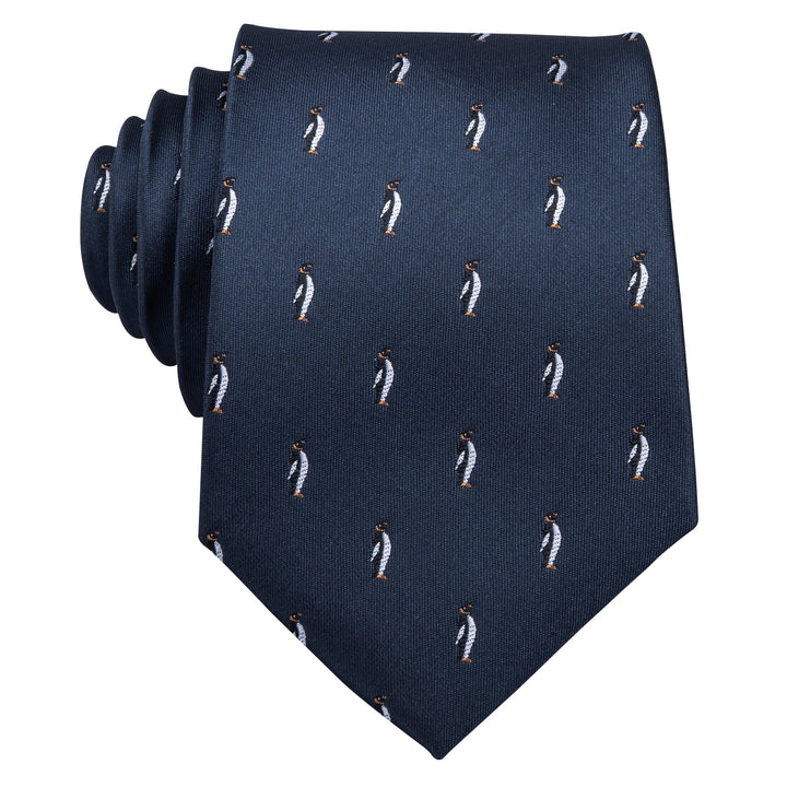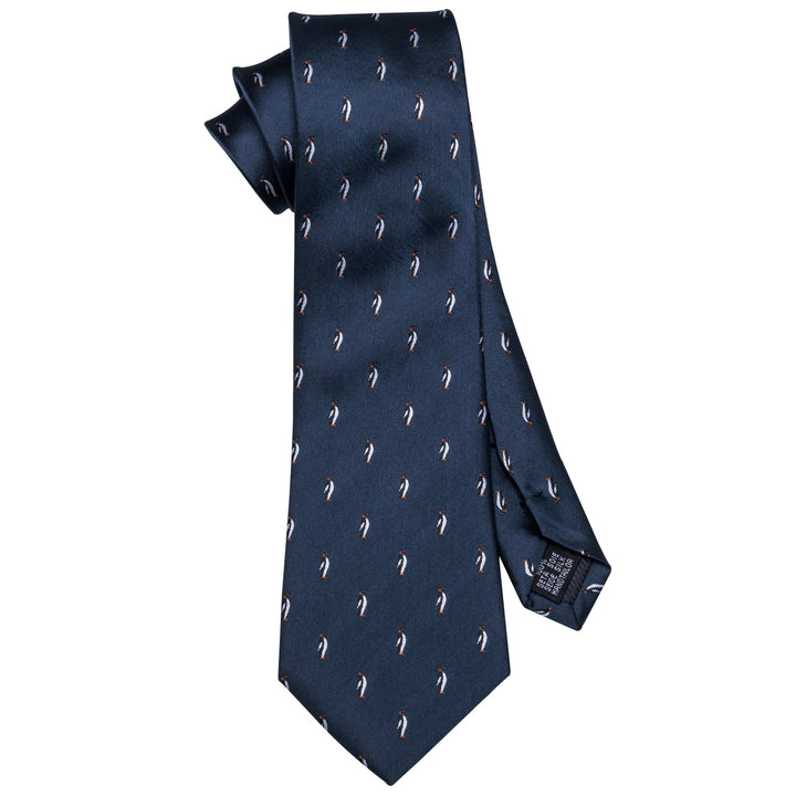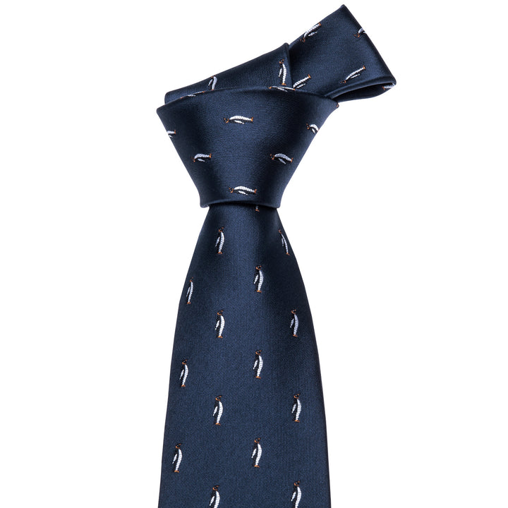 Ties2you Blue Tie Novelty Penguin Woven Silk Men's Tie Hanky Cufflinks Set