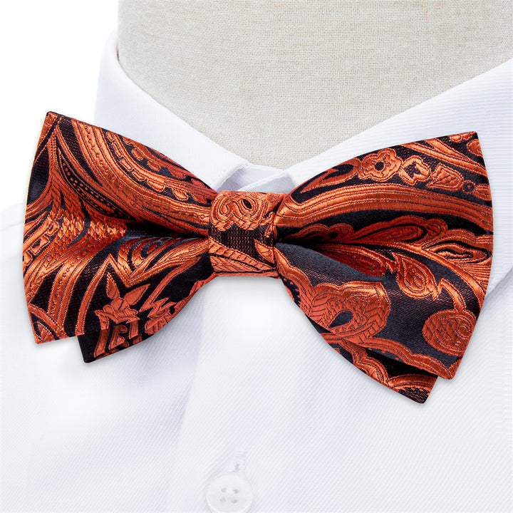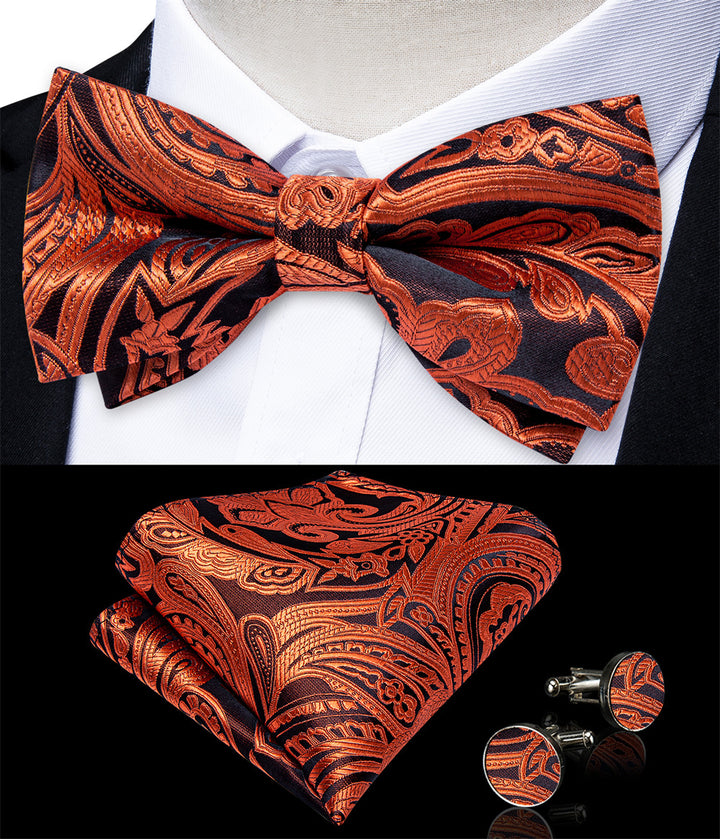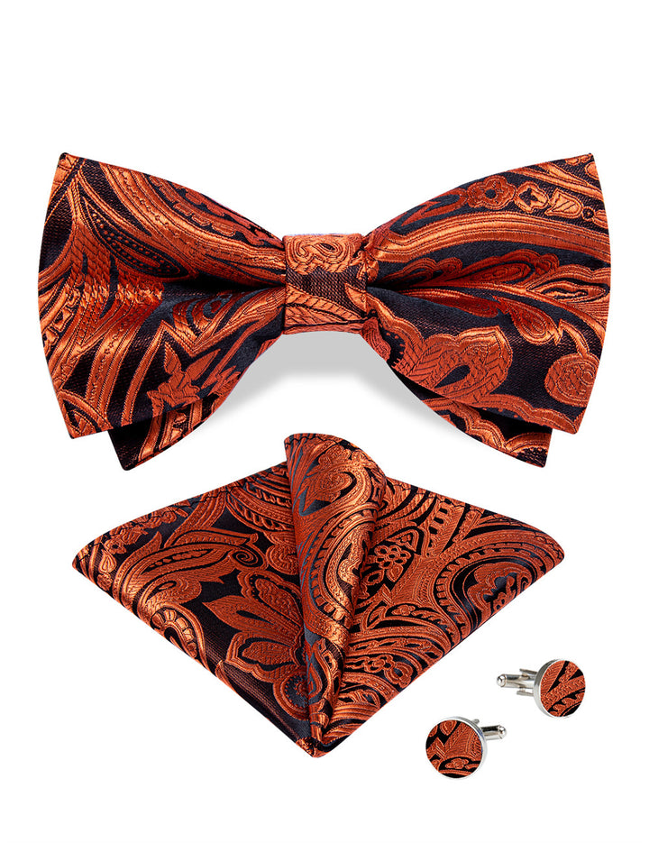 Ties2you Brown Paisley Pre-tied Bow Tie Pocket Square Cufflinks Set