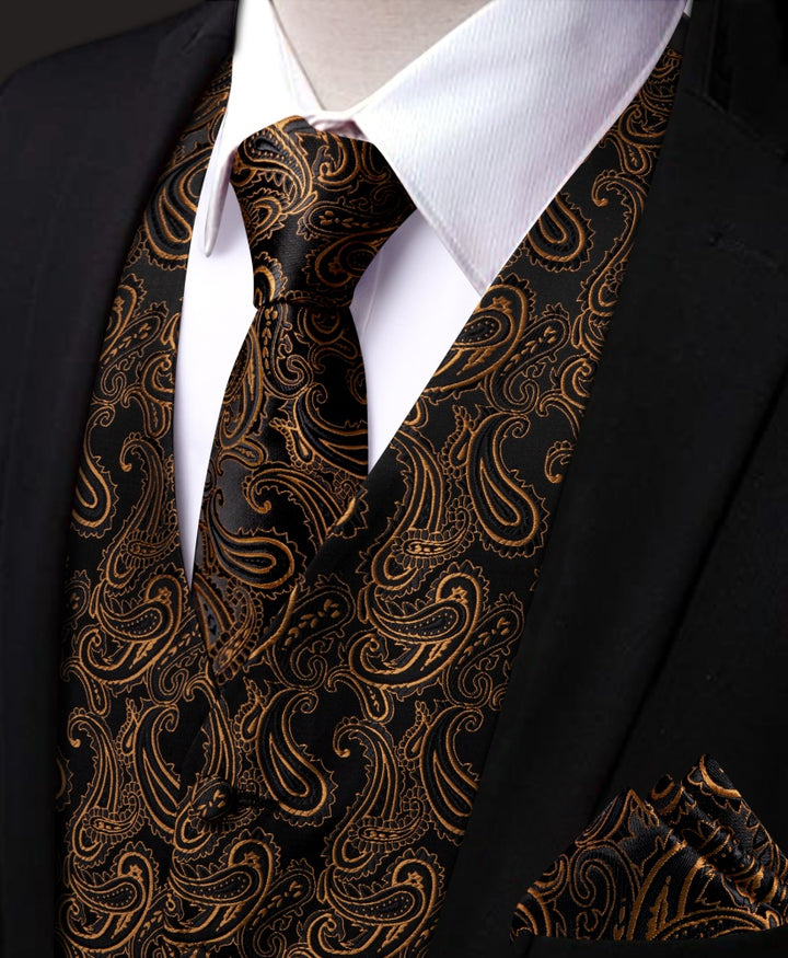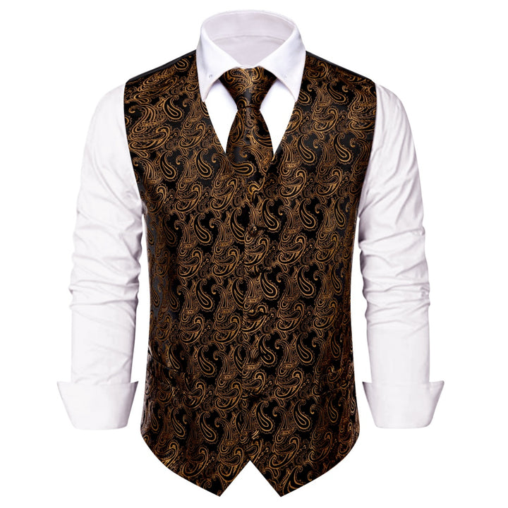 Ties2you Brown Paisley Sleeveless Wedding Vest Necktie Set for Men