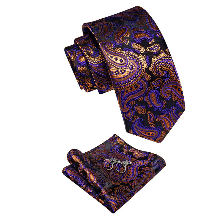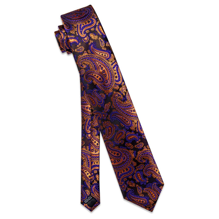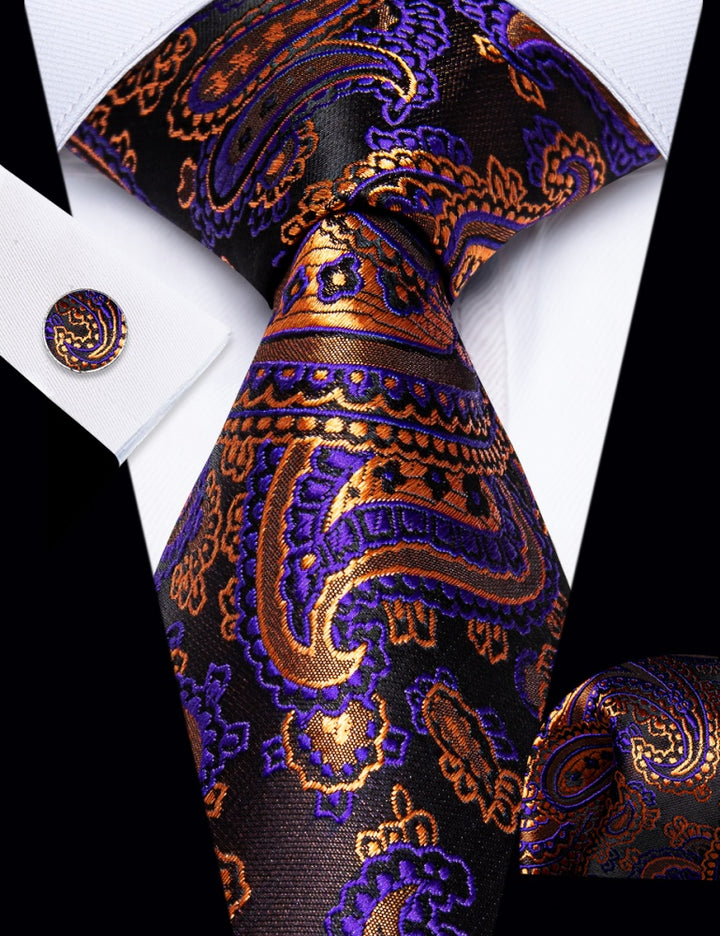 Ties2you Brown Tie Orange Purple Paisley Men's Tie Hanky Cufflinks Set