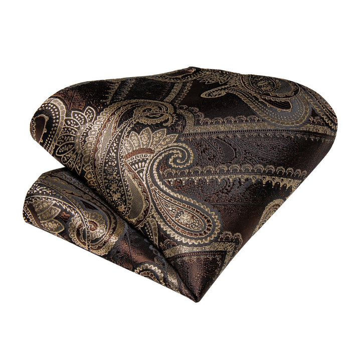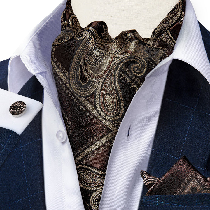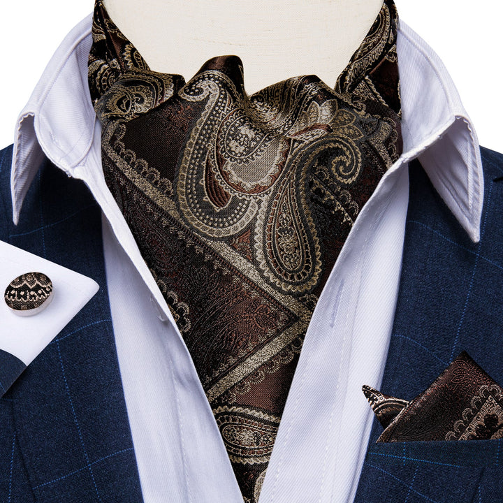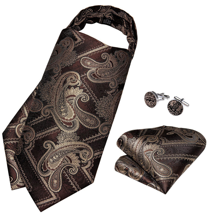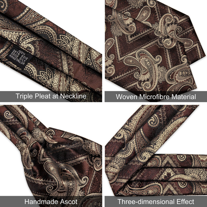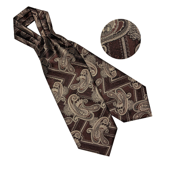 Ties2you Brown Tie Paisley Silk Cravat Woven Men's Ascot Tie Pocket Square Handkerchief Set