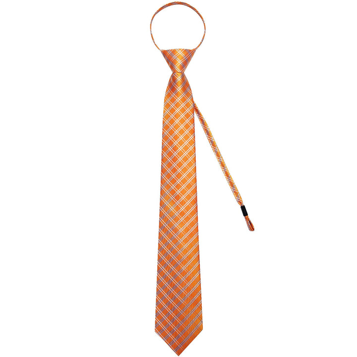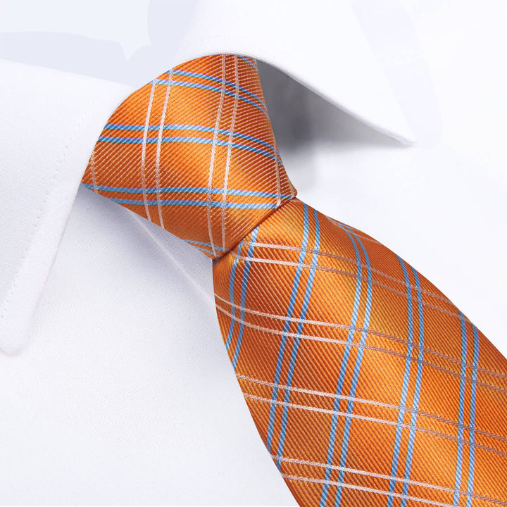 Ties2you Bucket Tie Orange Blue White Woven Plaid Men's Silk Tie Set