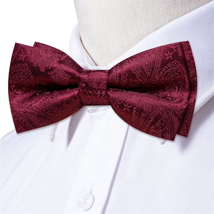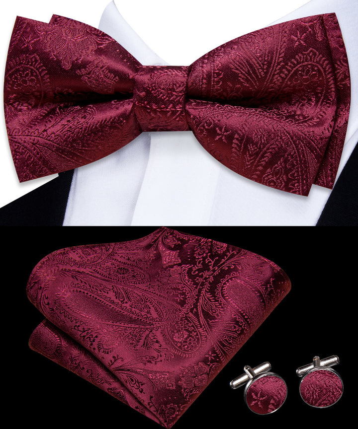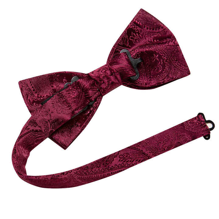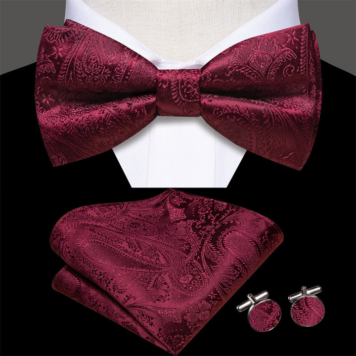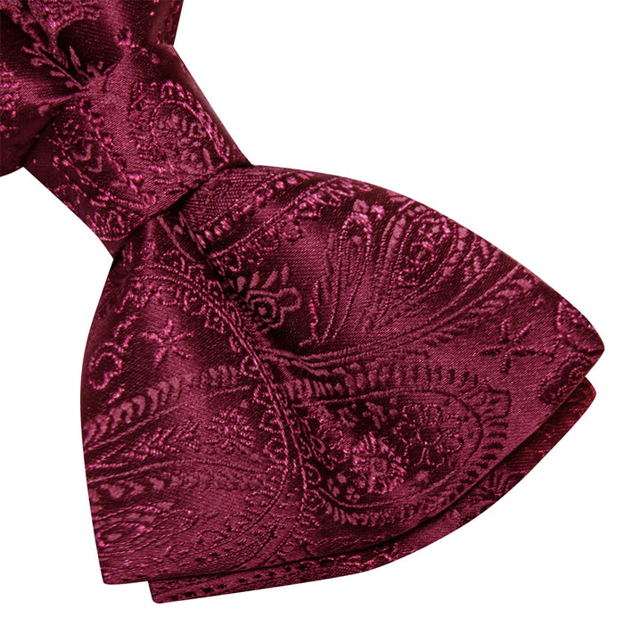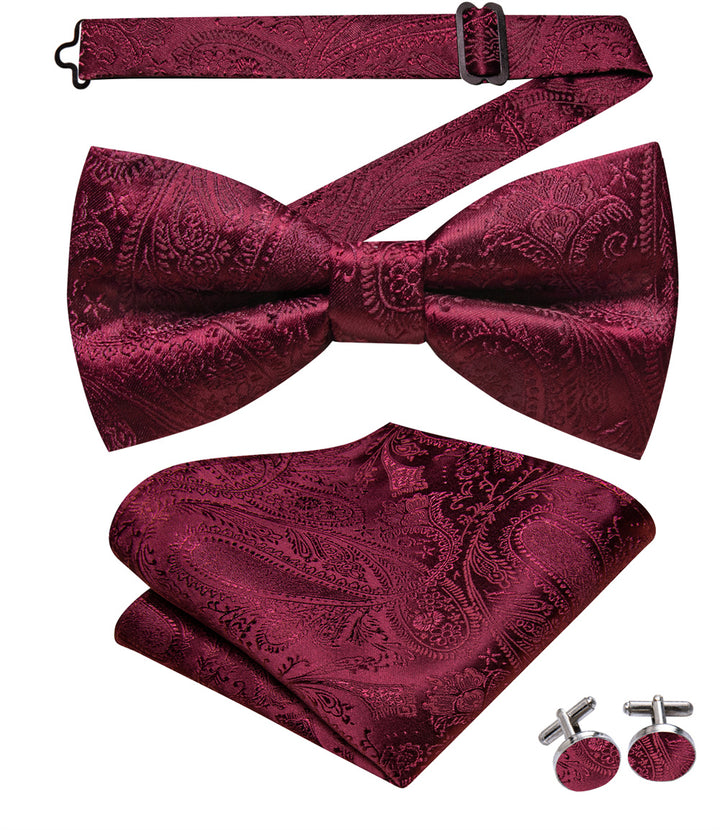 Ties2you Burgundy Paisley Bowtie Pre-tied Tuxedo Bow Tie Pocket Square Cufflinks Set