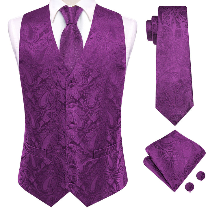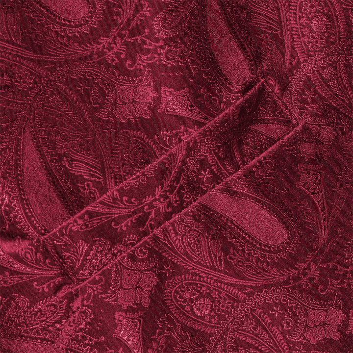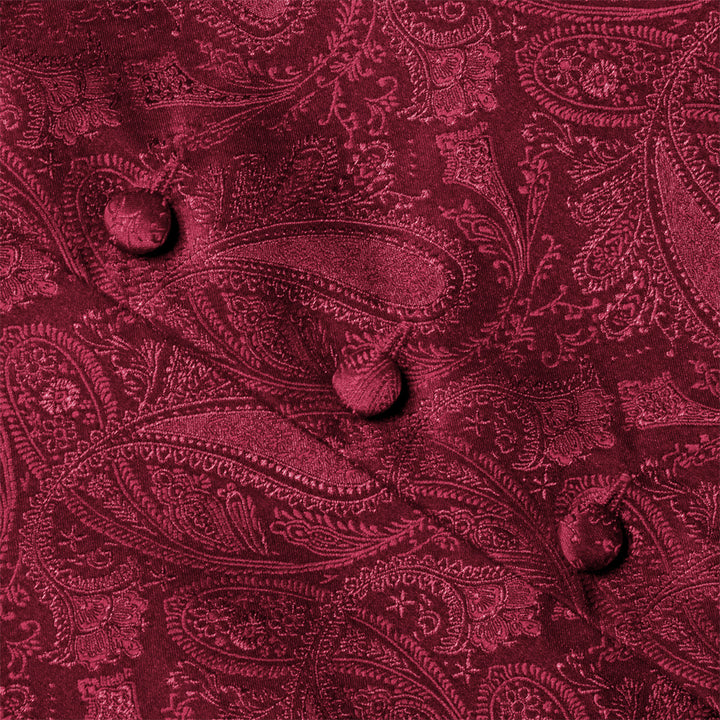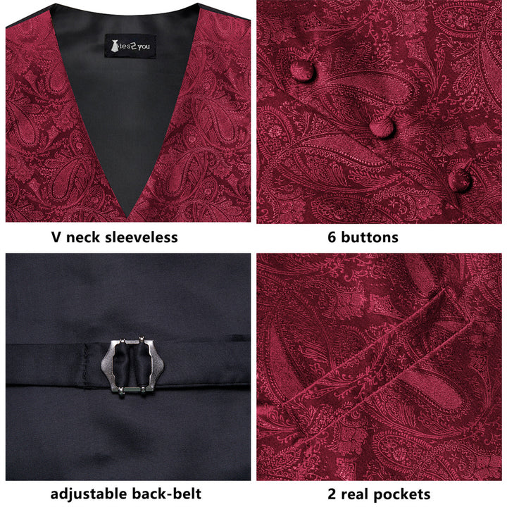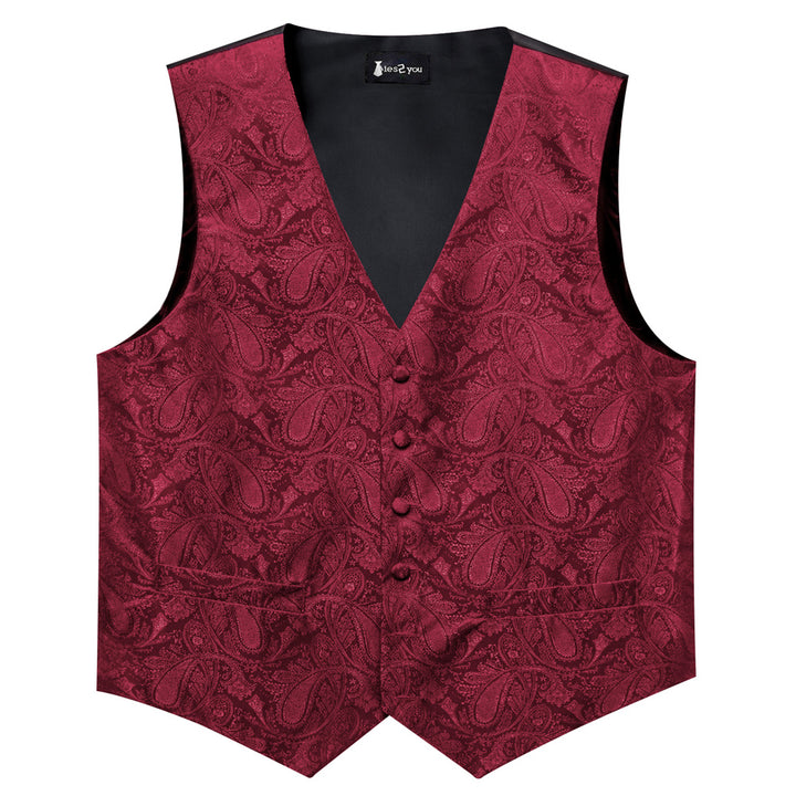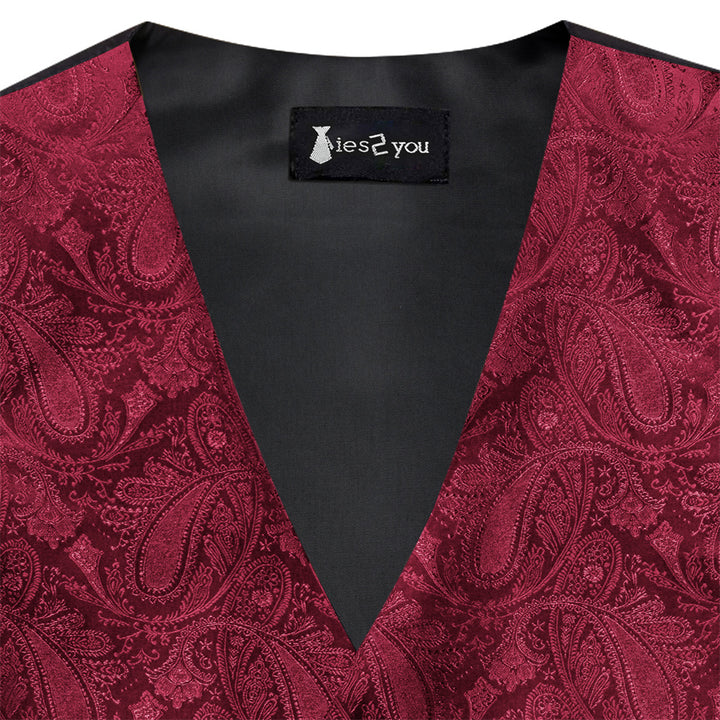 Ties2you Burgundy Paisley Pattern V-Neck Silk Vest Necktie Set