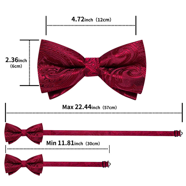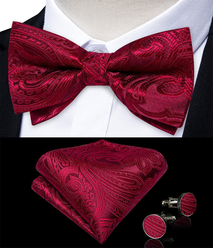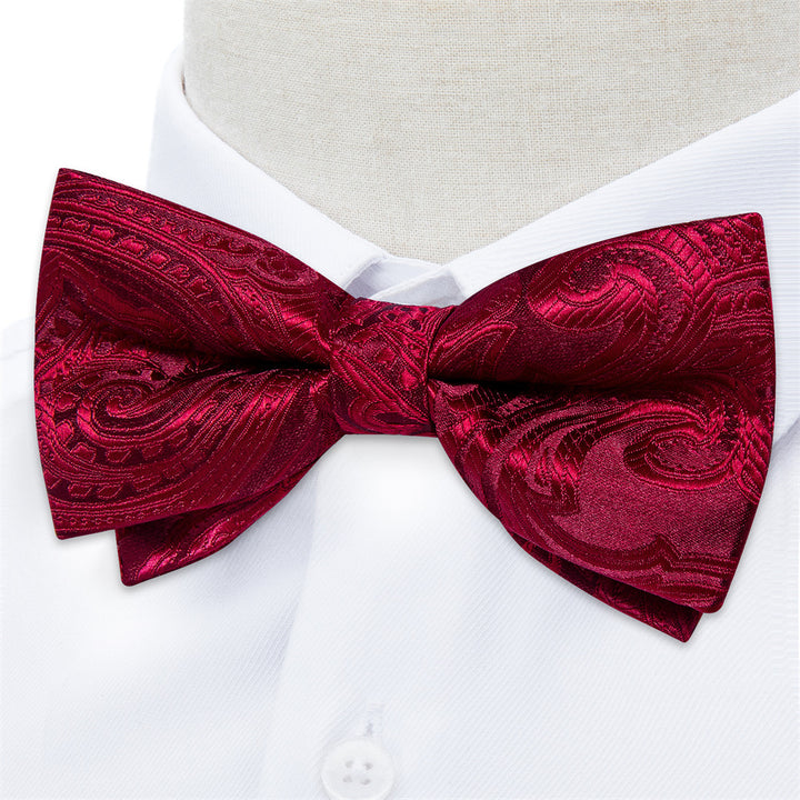Ties2you Burgundy Paisley Pre-tied Bow Tie Pocket Square Cufflinks Set