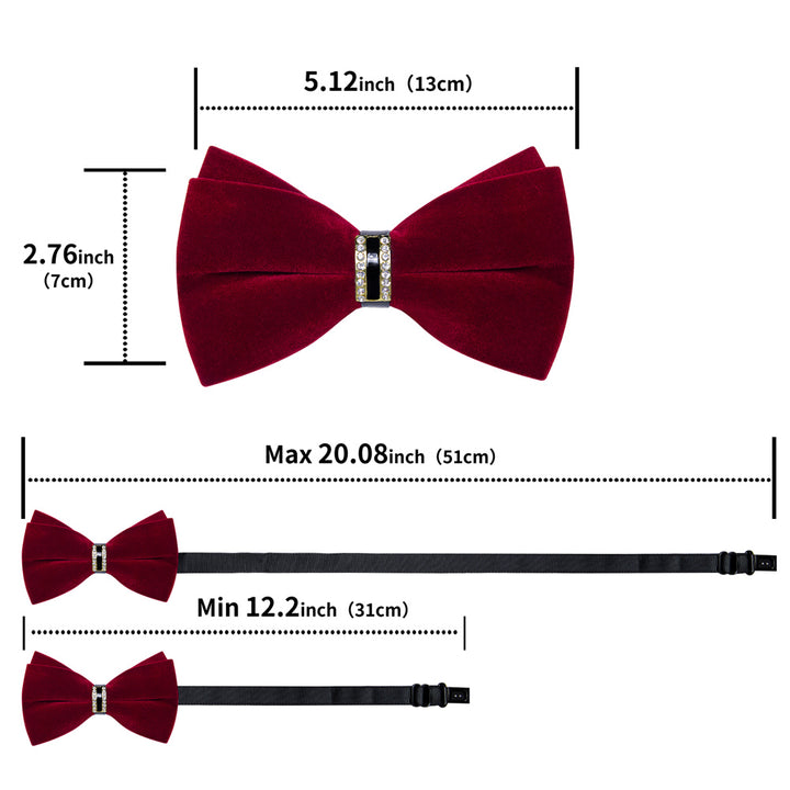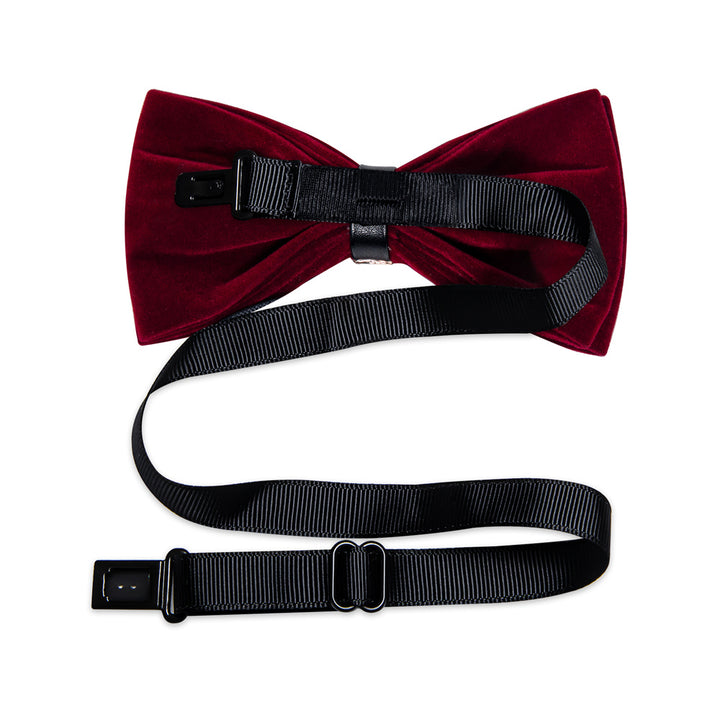 Ties2you Burgundy Solid Pre-tied Velvet Bow Tie Hanky Cufflinks Set